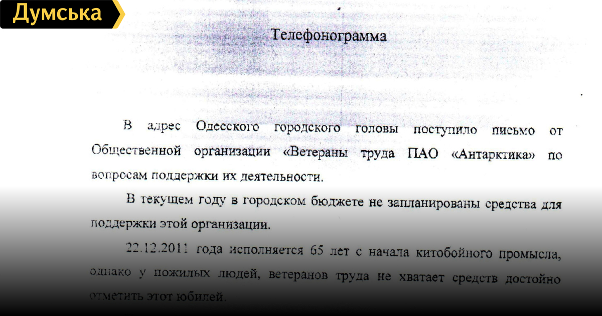 От редакции: у нас возникло несколько вопросов по поводу этого документа. Первый – какое отношение имеет департамент городского хозяйства Одесского городского совета (бывшее УЖКХ и ТЭК) к ПАО «Антарктика»? Ведь это предприятие всегда относилось к морехозяйственному комплексу и никогда не было коммунальным.