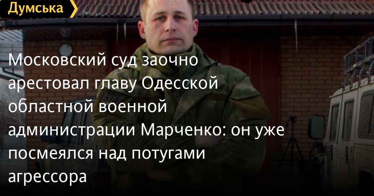 Басманный суд москвы 24 мая заочно арестовал главу Одесской областной военной администрации Максима Марченко.