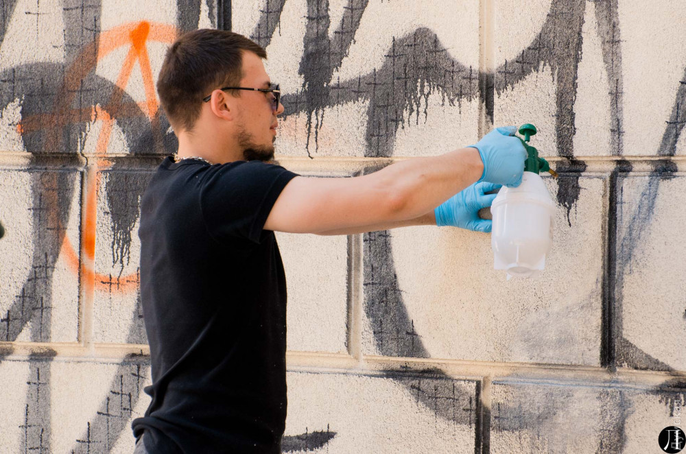 Несколько активистов начали очищать недавно отреставрированный мост Коцебу, который разрисовали вандалы.