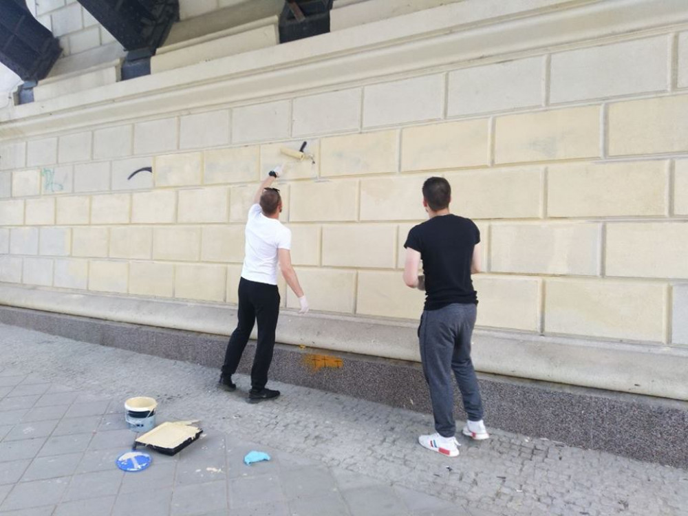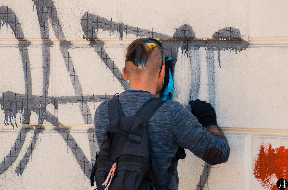 Акцию провела организация «Наше місто – Одеса». При этом цвет, который выбрали активисты для закрашивания надписей, несколько отличается от оригинального.
