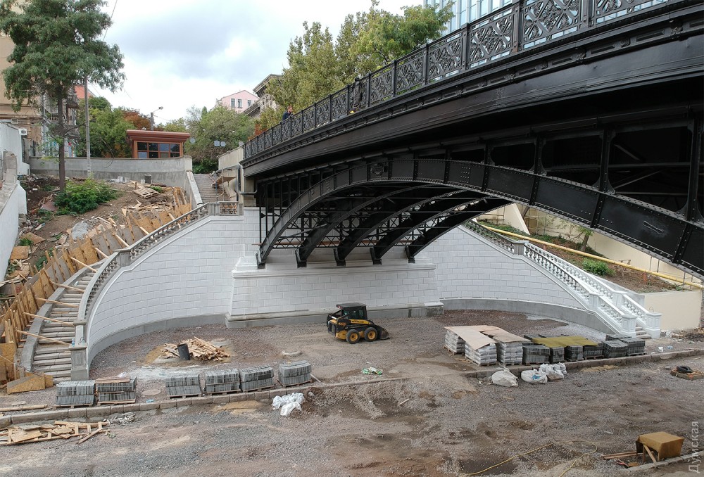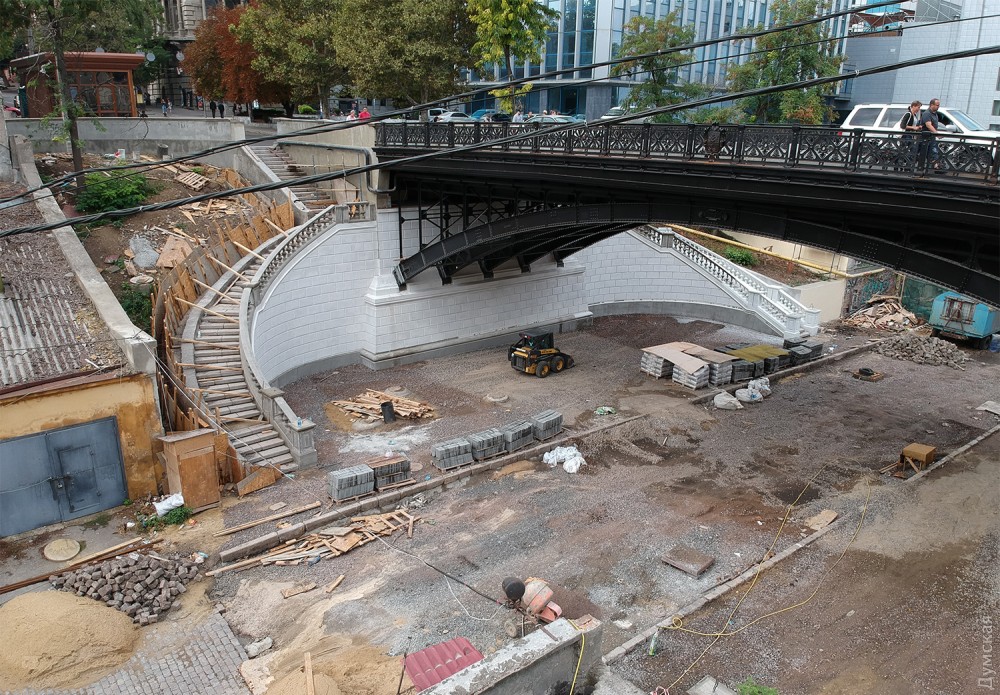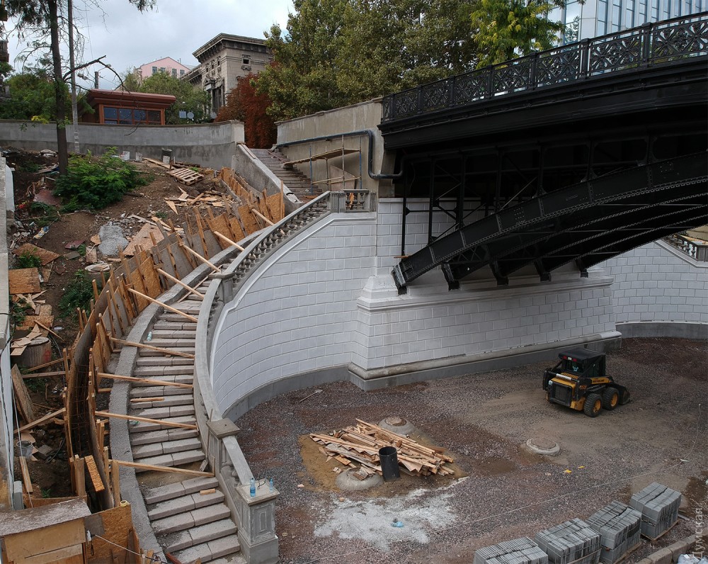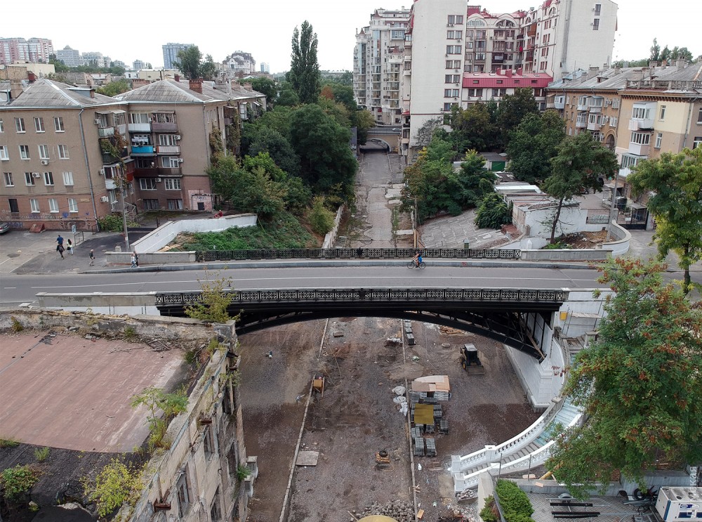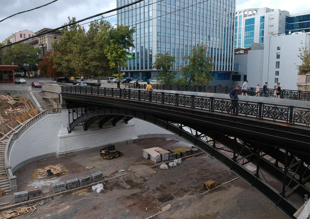 Сам мост уже готов. Сейчас приводят в порядок лестницы, ведущие на Деволановский спуск, и участок самого спуска под мостом.
