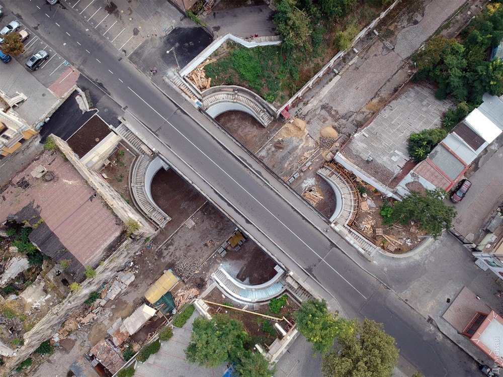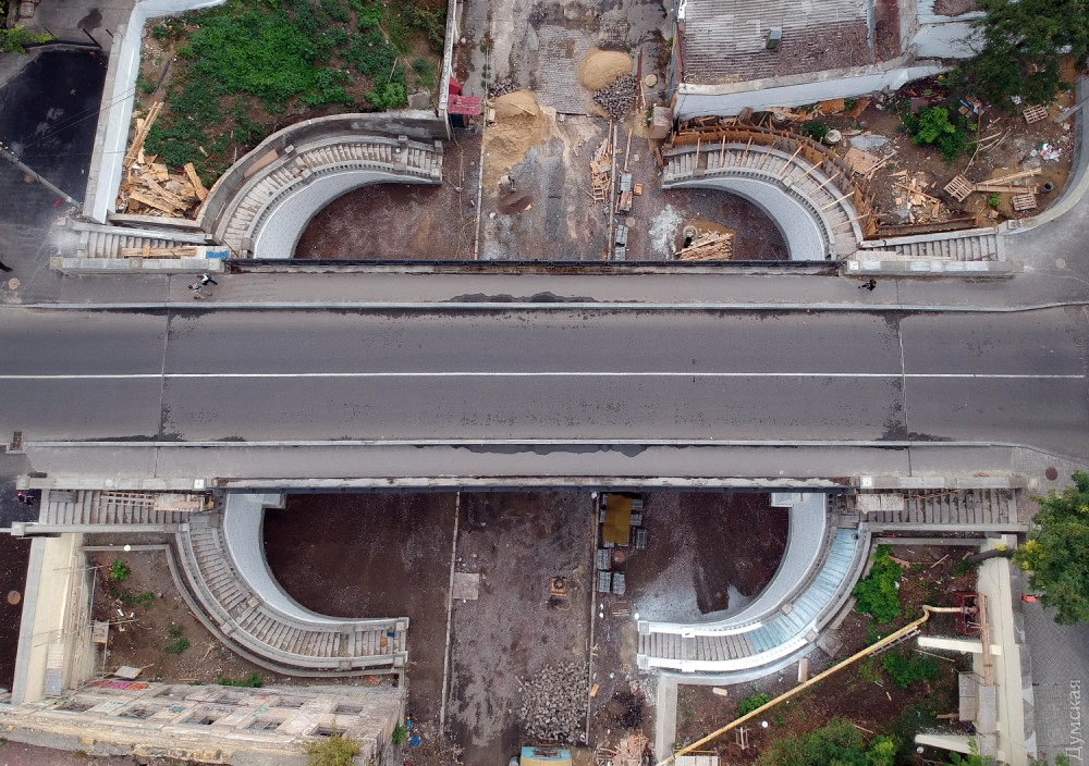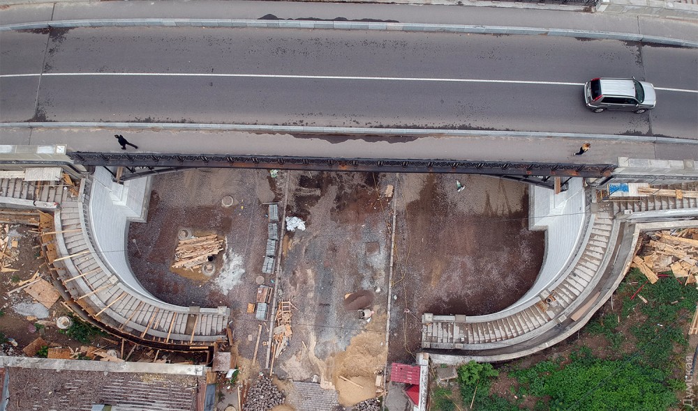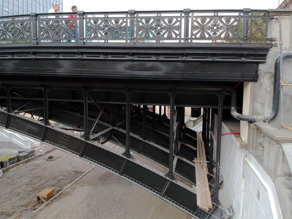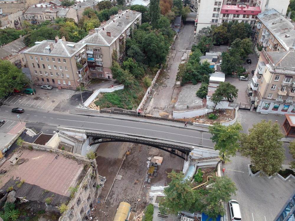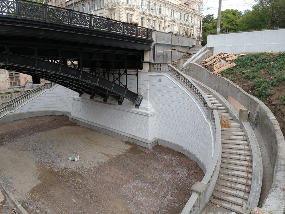 Сам мост уже готов. Сейчас приводят в порядок лестницы, ведущие на Деволановский спуск, и участок самого спуска под мостом.