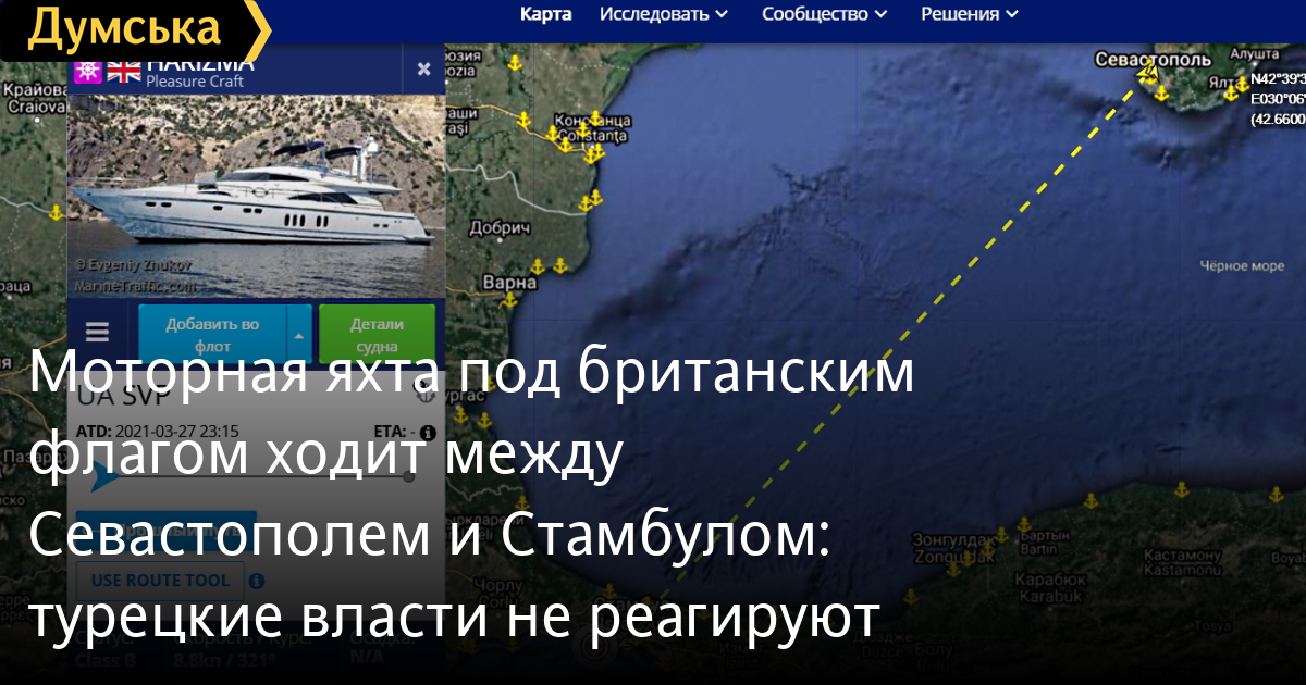 Моторная яхта Harizma под флагом Великобритании безнаказанно курсирует между портами Крыма и Турцией.