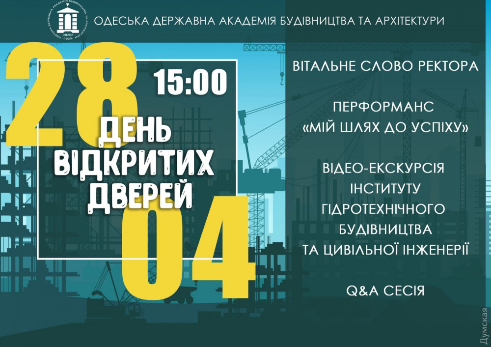 Ведущий строительный вуз Украины Одесская государственная академия строительства и архитектуры вновь зовет на День открытых дверей онлайн.
