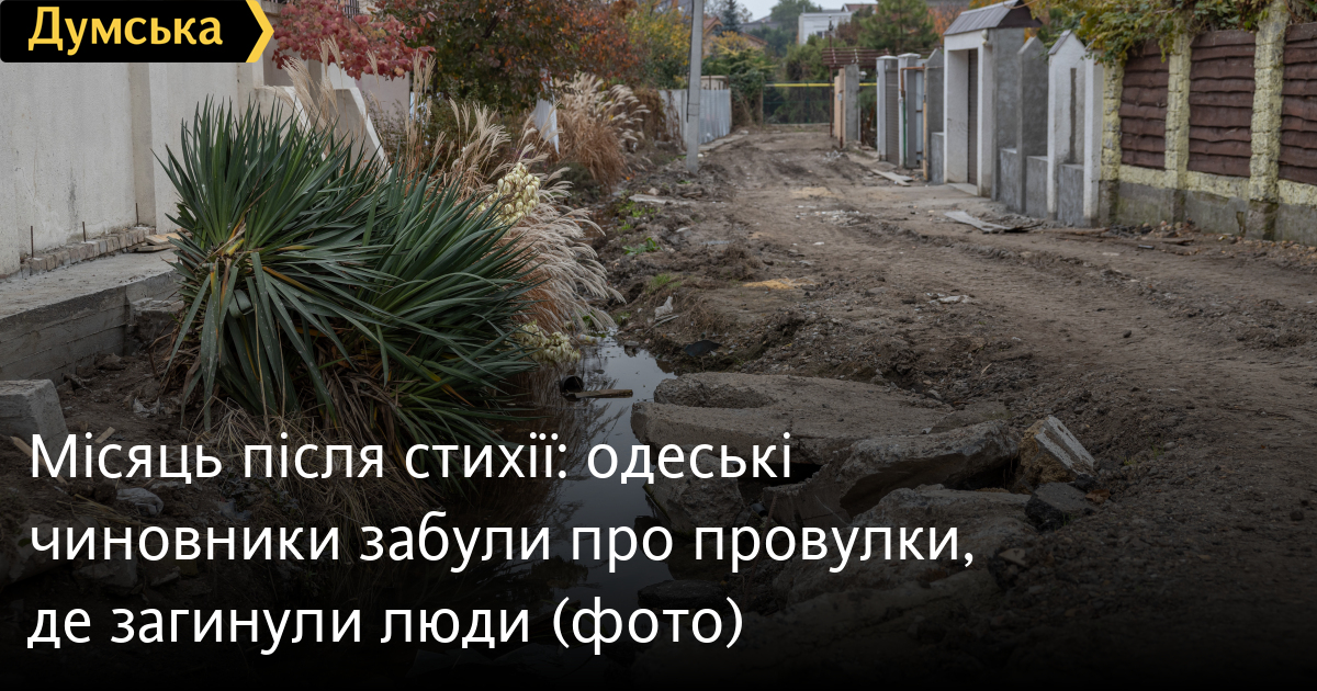 Більше місяця минуло з дня трагічної зливи, яка 30 вересня забрала життя дев'яти одеситів. Але в провулку Ейзенштейна, де в смертельній пастці опинилася сім'я переселенців, а 25-річну Надію Мішу змило бурхливим потоком, досі не відновлено дорогу, а залишки зруйнованої зливової каналізації забиті сміттям.