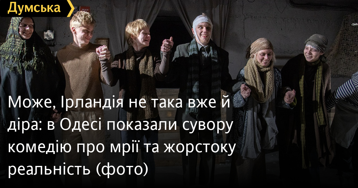 Життя суворих ірландських хлопців та дівчат показане в новій виставі «Театру на Чайній». Вистава створена за п'єсою «Каліка з острова Інішмаан» відомого драматурга та режисера Мартіна МакДони («Залягти на дно в Брюгге», «Сім психопатів», «Три білборди на кордоні Еббінга, Міссурі»). «Тарантіно від театру» – саме так сьогодні називають штатного драматурга Королівського Національного Театру, чиї п'єси зібрали багато нагород в галузі драматургії, включаючи Evening Standard Award, Tony і премію Лоуренса Олів'є. Деякі театри смакують сцени жорстокості, «чайники» зробили затемнення, коли до головного героя, хворобливого Біллі Клейвена, підходить із металевим прутом і недвозначними намірами здоровило Малюк Боббі. Перелякавшися за ці кілька секунд, поки немає світла і панує тиша, ми вже бачимо Біллі у бинтах і полегшено зітхаємо: спасибі, що живий. Вижити на Інішмаані вже само по собі є досягненям. Інішмаан – маленький острів, розташований біля західного узбережжя Ірландії. Населення цього віддаленого та «глухого» місця складає всього 150 осіб. Дія відбувається у 1934 році, часи утисків з боку Великої Британії не пішли марно, харчові продукти є дефіцитом, алкоголь є беззаперечною цінністю, еліксиром, здатним покращувати реальність, так би мовити, зсередини. Цю систему винагородження себе за важке життя викручено на максимум. «Може, Ірландія не така вже й діра». Цю фразу бідні, проте горді персонажі повторюють з будь-якого приводу. Наприклад, акула до тамтешніх вод запливла, Голлівуд зацікавився місцевою натурою та типажами… Режисер вистави Владислав Костика зумів зробити так, що з першої появи глядачам зрозумілий шлях кожної дійової особи, хто як ним пройшов та в якому взутті. Але ж виконавців досвідченими не назвеш, це третьокурсники акторського відділення театрально-художнього коледжу, учні самого Костики та Олега Шевчука. Що ж, молодим людям пощастило. На відмінну оцінку за акторську майстерність заслуговують усі. Особливо виконавець центральної ролі. Якщо інші остров'яни спілкуються суржиком, у деяких є індивідуальні дефекти мовлення, головний герой говорить красиво, правильно, його думки шляхетні, його тіло спотворене хворобою, він припадає на одну ногу, проте ніскілечки не озлобився. Можливо, його дано сусідам як життєвий урок Каліка Біллі (Сергій Ярошенко), Біллі Клейвен, так звуть бідолаху. Почуття провини того, хто вижив, йому знайоме. Драматург довго не дозволить хлопцю (а відтак і глядачу) достеменно дізнатися, як так сталося, що батьки Біллі втопилися, а хворе немовля покинули. Як і кожна дитина, чиї мама з татом розлучаються або взагалі тікають (хоч би й на той світ), Біллі звик вважати, що все це через нього, бо він невдале дитя, недостатньо здорове та гарне… Страждання моральні та фізичні, однак, не слугуватимуть причиною здатися. «У житті кожного хлопця настає момент, коли він повинен взяти долю у свої руки, спробувати щось зробити. І навіть коли він знає, що у нього один шанс на мільйон, він все ж-таки повинен його використовувати, інакше для чого взагалі жити?» – так говорить Каліка Біллі. Тітка Ейлін (Софія Майстренко) та тітка Кейт (Віра Сергеєва), сестри Осборн, тримають крамничку, де місцеві жителі купують продукти та спиртне, звісно. Важливі персони в острівній спільноті, і при цьому перед нами не стільки жінки, скільки два вичавле