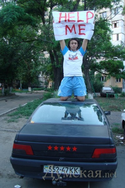 Он рассказал журналистам, что «Пежо», принадлежащий лидеру организации Вере Шевченко, был припаркован на улице Головковская, возле Малиновской прокуратуры. Обнаружив его поврежденным, Евгений устроил импровизированную акцию.