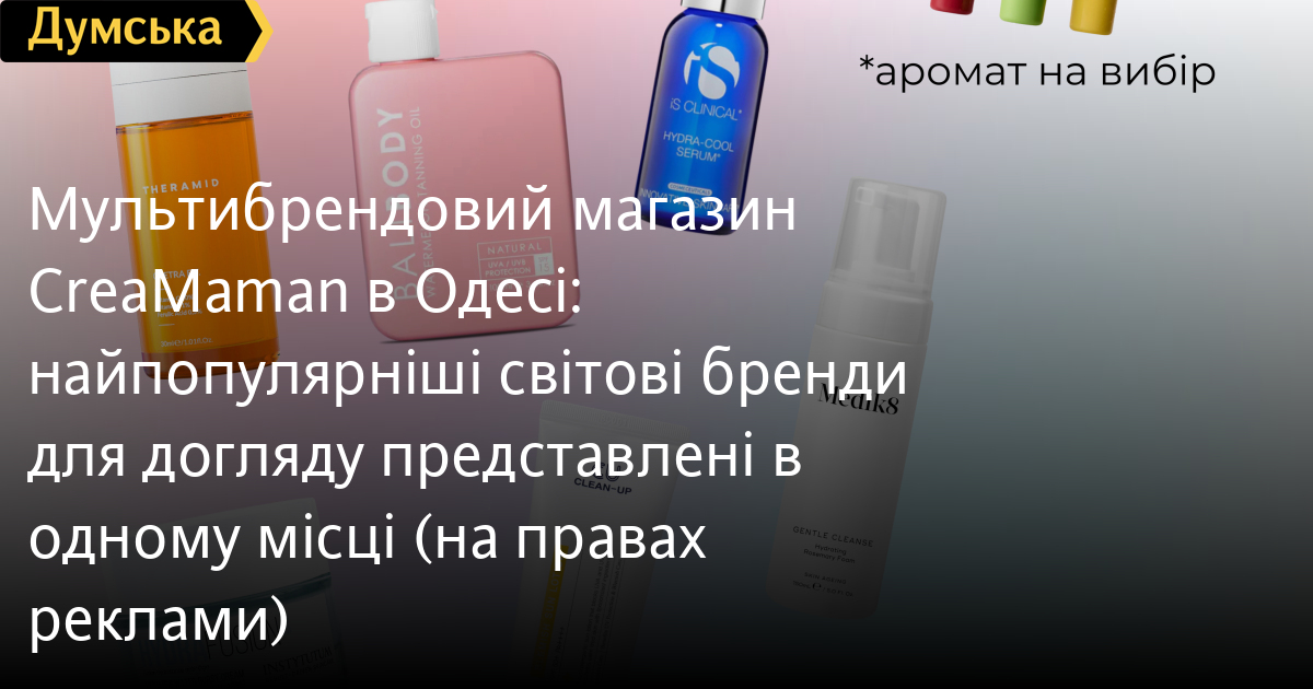 Мультибрендовий магазин CreaMaman в Одесі: найпопулярніші світові бренди для догляду представлені в одному місці (на правах реклами)Мультибрендовий магазин CreaMaman із косметикою в місті Одеса ! Найпопулярніші світові бренди для догляду за обличчям, волоссям та тілом Адреса: проспект Лесі Українки, 13, подивитися асортимент онлайн можна тут. Приходь, обирай, запитуй — ми завжди на зв’язку СМЕРТЬ РОСІЙСЬКИМ ОКУПАНТАМ! Помітили помилку? Виділяйте слова з помилкою та натискайте control-enter |
