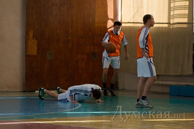 Не обращая внимания на ростовое и возрастное превосходство команды чиновников, «регионалы» с самого начала матча захватили инициативу. Наиболее активными игроками с, надо признать, неплохой техникой оказались Марат Королев, Павел Вугельман, игравший в очках, как легендарный 33-й номер «лейкерсов» Карим Абдул-Джаббар, и Олег Этнарович. Именно эти три депутата постоянно присутствовали на острие тактических схем своей команды, показывали отменный дриблинг и почти не покидали трехсекундной зоны противника.
