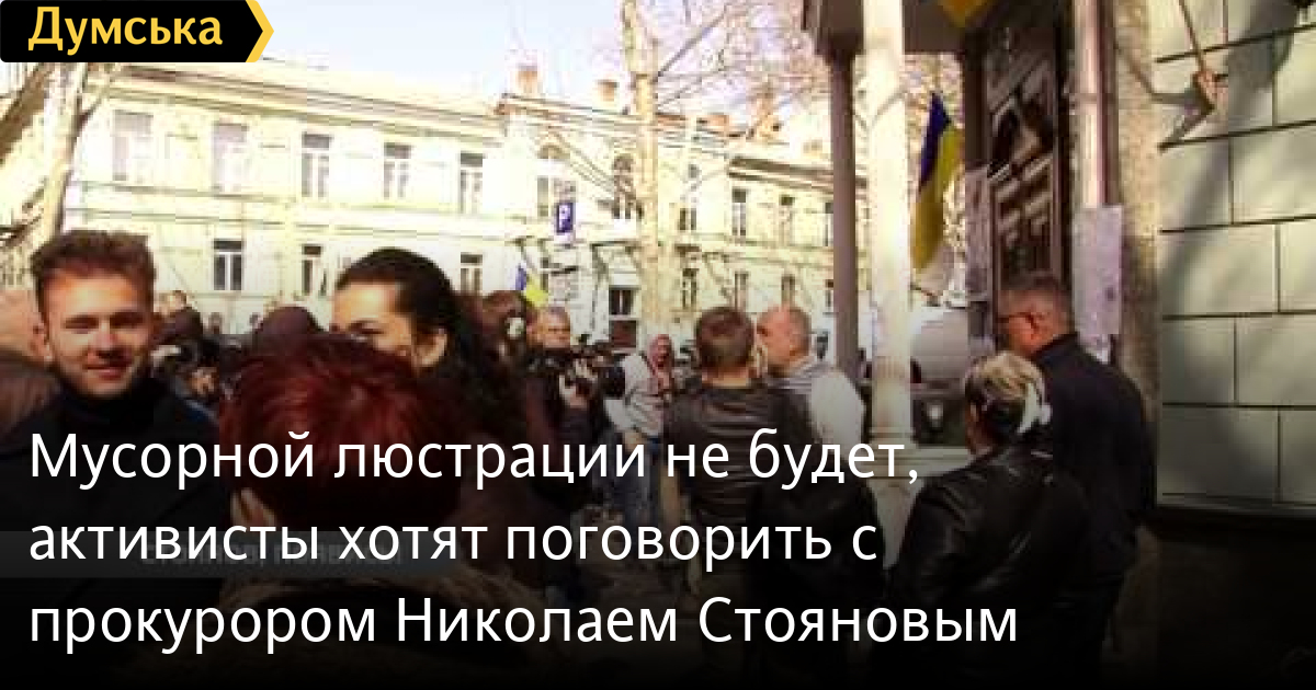 «Мусорной люстрации» не будет, активисты хотят поговорить с прокурором Николаем СтояновымУтро 4 апреля, облпрокуратура по-прежнему заблокирована. После появления альфатора возле дверей здания в городе заговорили о мусорной люстрации. Впрочем, активисты опровергают эти слухи. Вместо погружения Николая Стоянова в мусор, в случае появления нежеланного прокурора, протестующие готовы вести конструктивный диалог СМЕРТЬ РОССИЙСКИМ ОККУПАНТАМ! Заметили ошибку? Выделяйте слова с ошибкой и нажимайте control-enter Думская ТВ. Сюжеты: