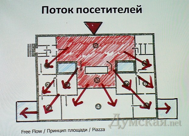Теперь о предпроектных предложениях швейцарца. Единственное помещение бывшего английского клуба, которое восстановят в прежнем виде, — большой зал. Здесь, по замыслу Хуго Шера, будут выставлены лучшие макеты кораблей, а также расположатся «капитанское» кафе, сувенирный магазин, гардероб и уборные. Кроме того, главный зал можно будет использовать в качестве представительского помещения для проведения приемов и разных акций.
