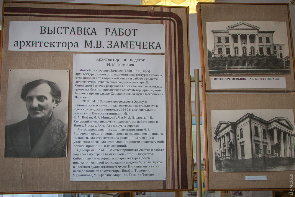 Еще один известный преподаватель — архитектор Моисей Замечек. Выдающийся зодчий еще до революции 1917 года украсил Санкт-Петербург множеством величественных зданий. После переезда в Одессу, наряду с преподаванием в инженерно-строительном институте принимал участие в работе комитета по охране памятников культуры города. Именно Замечек смог систематизировать и изучить архитектуру нашего города с точки зрения ее архитекторов: Боффо, Торичелли, Моранди, Тома де Томоне.