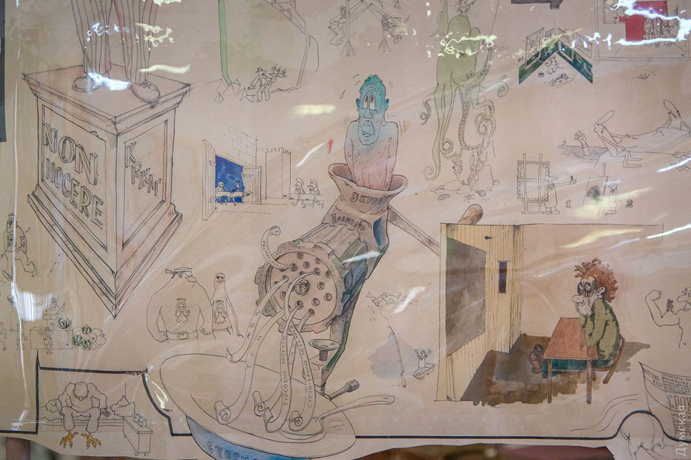 Музею одесской «стройки» всего 35 лет. Экспозицию архивных фотографий и различных артефактов начала собирать сотрудница вуза Лидия Чепиль. Сейчас ее дело продолжает бывший смотритель музея Николаевского судоремонтного завода Анна Макушина. Смотритель провела нам небольшую экскурсию по залам хранилища.
