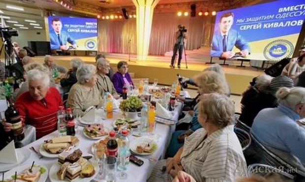 Кроме прочих, под раздачу попал народный депутат Сергей Кивалов, который баллотируется в Приморском районе Одессы. На одну из встреч с политиком пригласили пенсионеров и врачей, раздав им продуктовые наборы и «материальную помощь» в размере 200 грн.