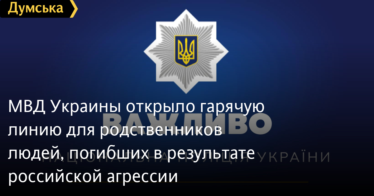 Министерство внутренних дел Украины запустило телефонную «горячую линию», на которую могут обращаться родственники людей, погибших в результате российской агресии.