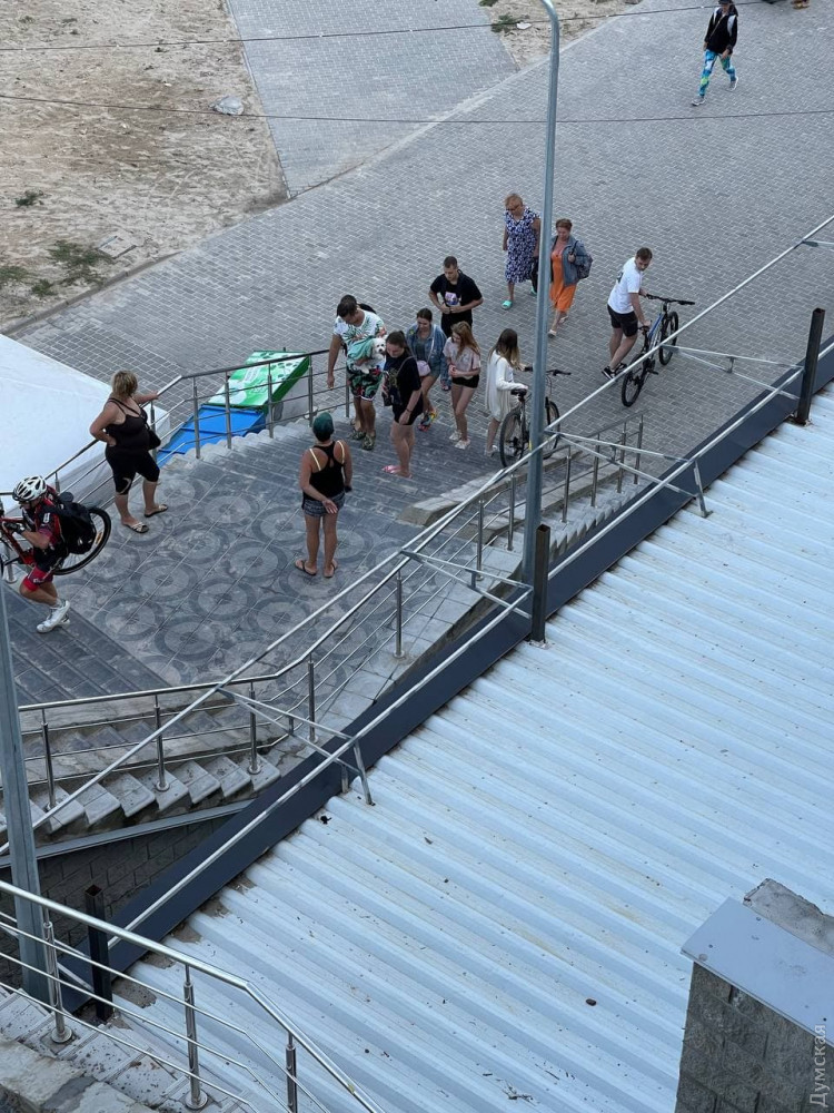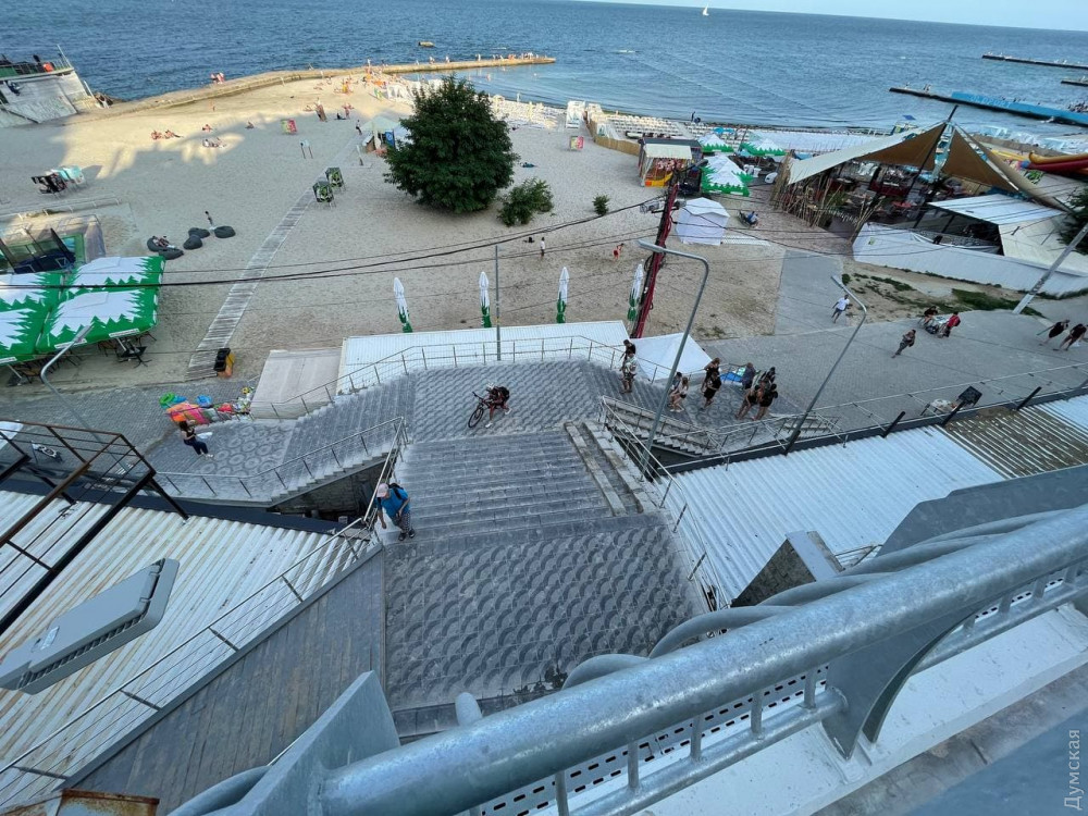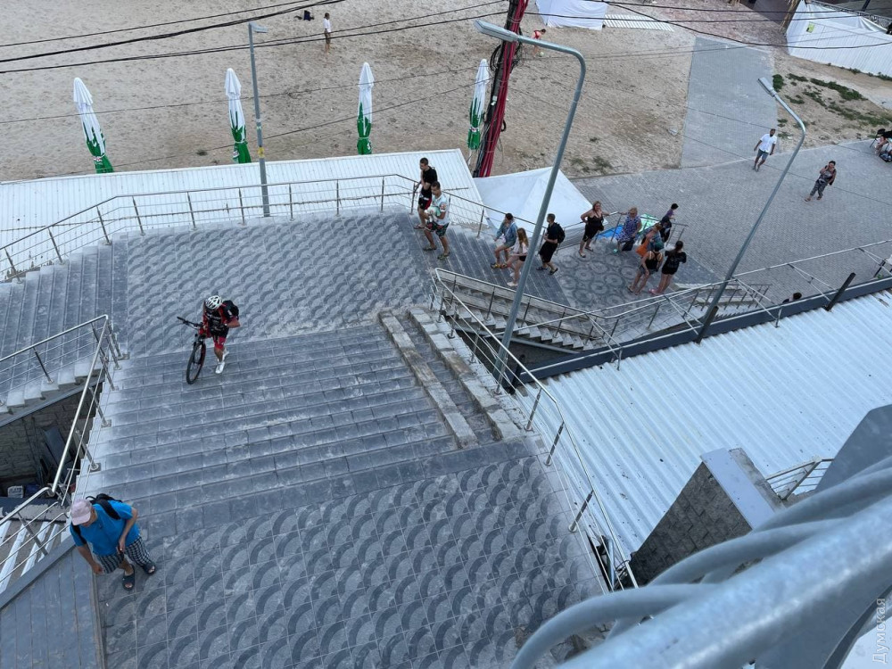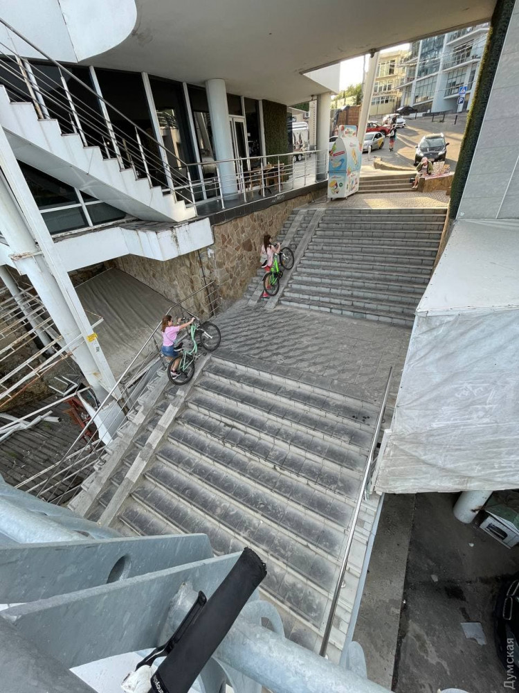После завершения реконструкции спуска к пляжу на 10-й Фонтана, оборудования там тротуара и велодорожки, на лестницу у ресторана «Зебра» снова установили пандус.