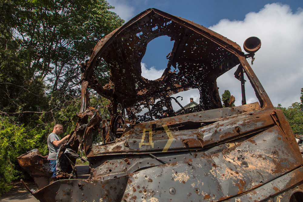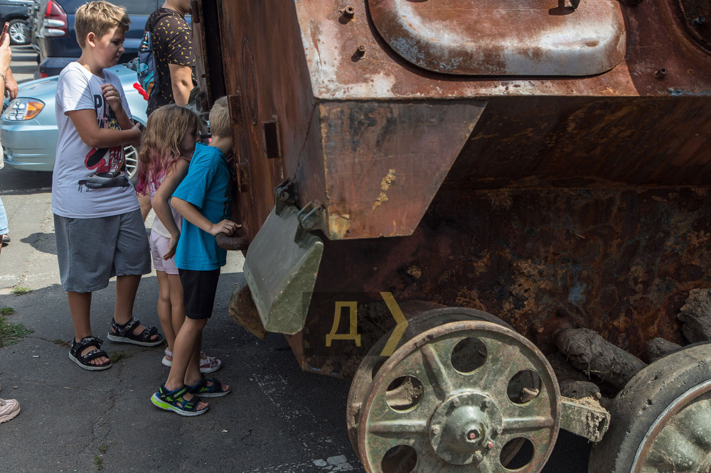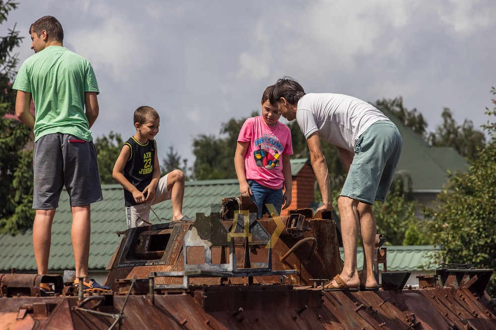Найбільше захоплення у середнього сина Олександра. Малюк облазив уздовж і впоперек усі три згорілі машини і засмутився, коли мати не пустила його в обвуглені нутрощі МТ-ЛБ.
