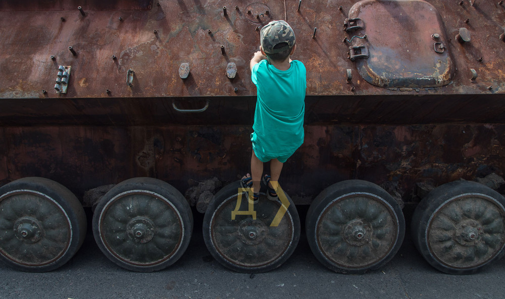 «Він обожнює всю техніку, йому цікаво, він любить солдатів, малює БТРи та танки, які палять наші захисники. Вони б не злякалися, якби я дозволила залізти всередину, то залізли б», — каже відвідувачка виставки.