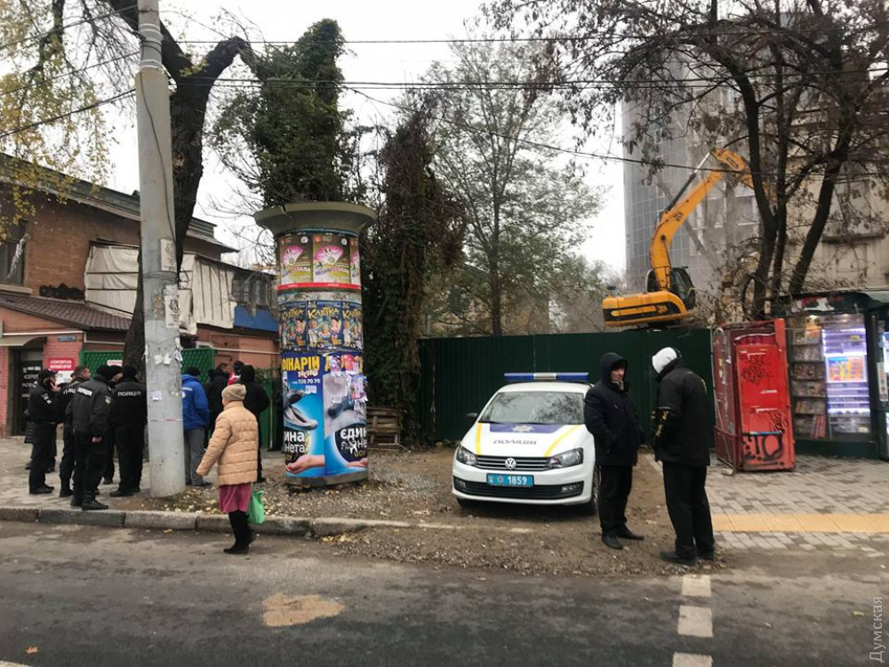 Как передает корреспондент «Думской», рабочих фирмы «Кайлас 2007», который крушат особняк, охраняют полицейские.
