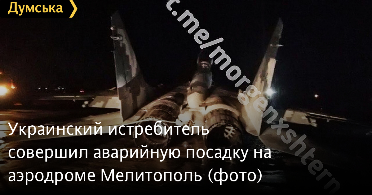 Истребитель МиГ-29 Воздушных сил Украины совершил аварийную посадку на военном аэродроме в Мелитополе.