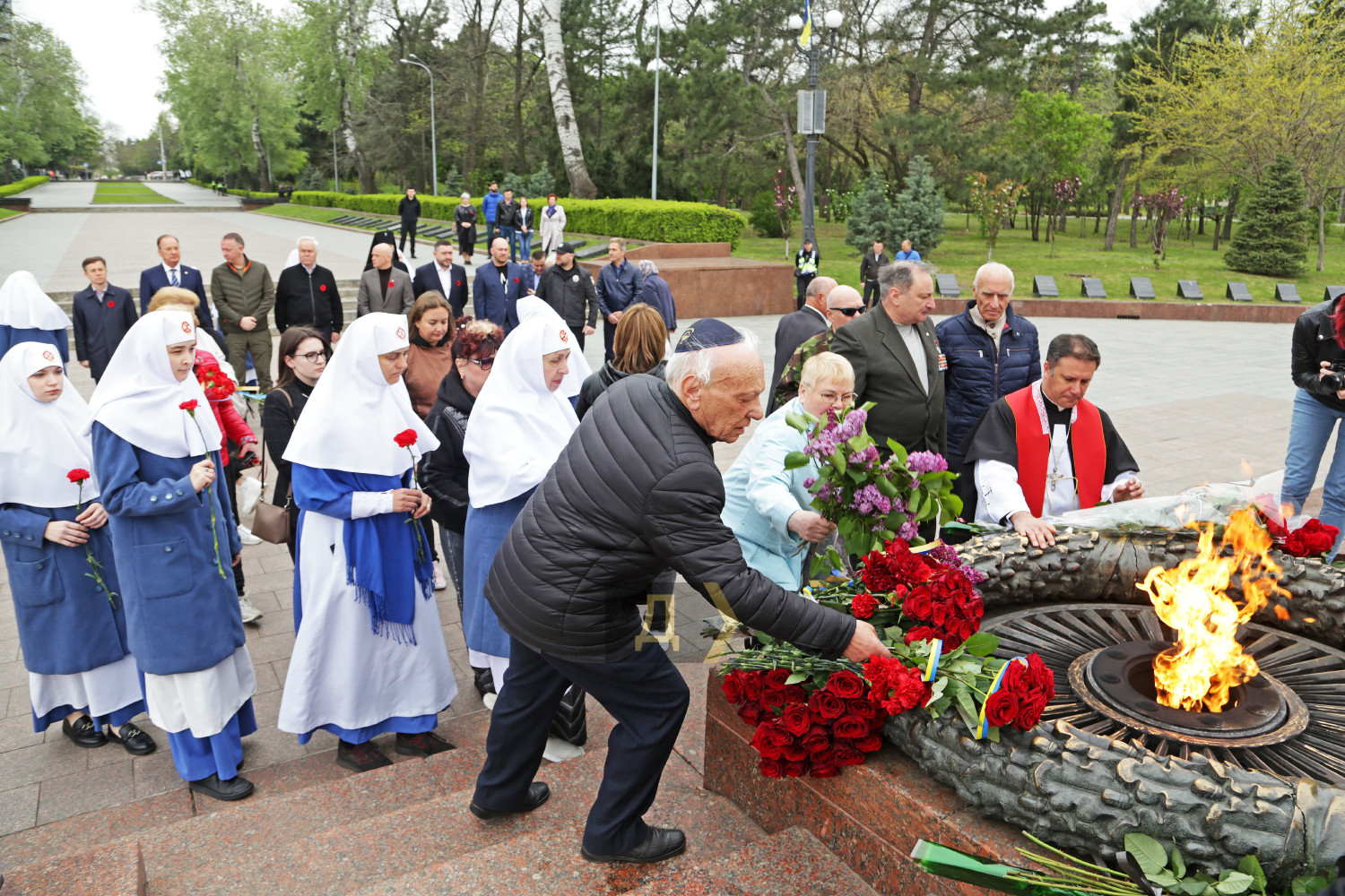 День пам'яті та примирення відзначили сьогодні в Одесі традиційним покладанням квітів до пам'ятника Невідомому матросу на Алеї слави в парку Шевченка. Як повідомляє кореспондент «Думської», у ньому взяли участь керівники міста та області, військові, представники релігійних і громадських організацій. Перед церемонією оркестр Військово-морських сил України виконав державний гімн. Зазначимо, що сьогодні президент Володимир Зеленський скерував до парламенту законопроєкт про перенесення на 8 травня Дня перемоги над нацизмом у Другій світовій війні 1939-1945 років. Якщо Рада його підтримає, то 2024 року 9 травня Україна відзначатиме лише День Європи. Фото Сергія Смоленцева СМЕРТЬ РОСІЙСЬКИМ ОКУПАНТАМ! Помітили помилку? Виділяйте слова з помилкою та натискайте control-enter |