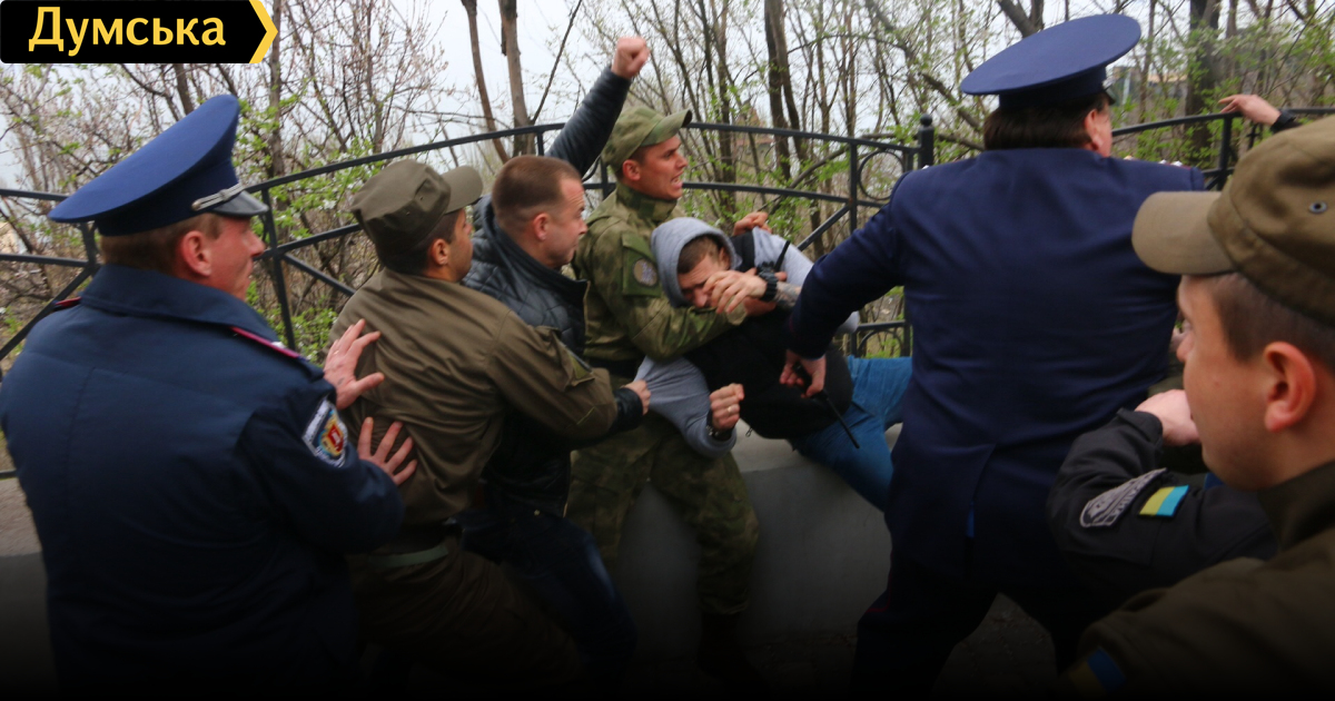 Но чуть позже, в начале Аллеи Славы, активисты «Самообороны Одессы» и «куликовцы» начали физическое противостояние. В конфликт оперативно вмешалась полиция, после чего «патриоты» в ход пустили газ. В итоге правоохранители задержали обоих участников конфликта и увезли в отдел полиции