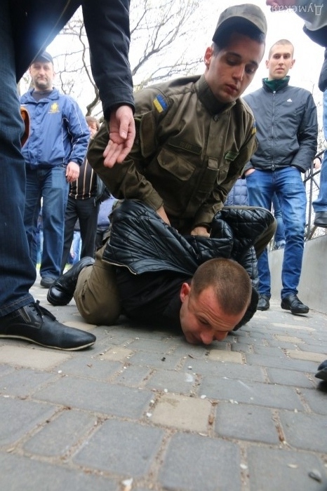 Один из них сорвал георгиевскую ленточку с одежды «куликовца». Вспыхнула драка. Правоохранители задержали двоих дерущихся – по одному с каждой стороны, после чего гвардейцы развели противников в разные стороны.