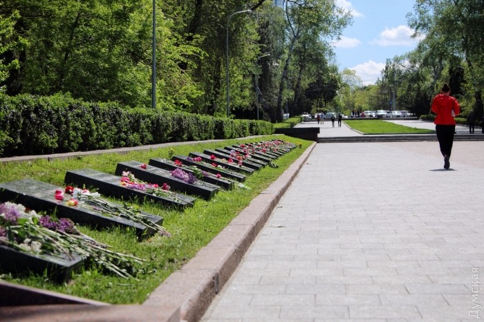 Коммунальщики оставили всего несколько букетов возле Вечного огня и на надгробиях, ведущих к стелле. Как сообщили мэрии, горожане в основном приносили на День Победы сирень и тюльпаны, которые быстро завяли.