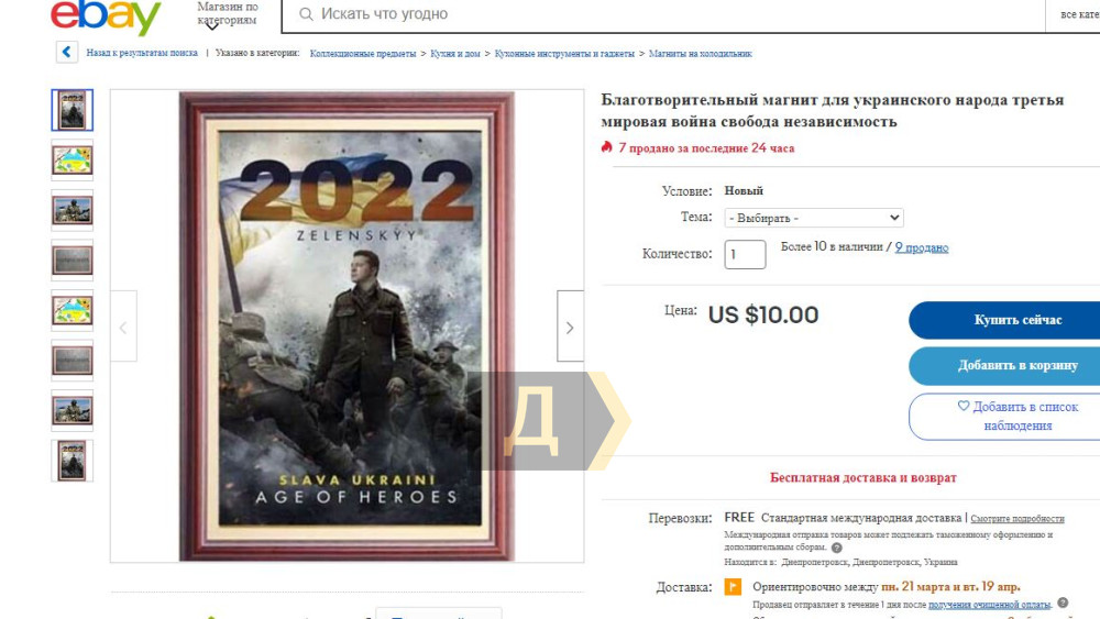 Продается множество товаров со знаком «благотворительность», например, магнитики на холодильник с изображением Зеленского на поле боя. Продаются и фигурки Президента Украины к популярной настольной игре Warhammer.