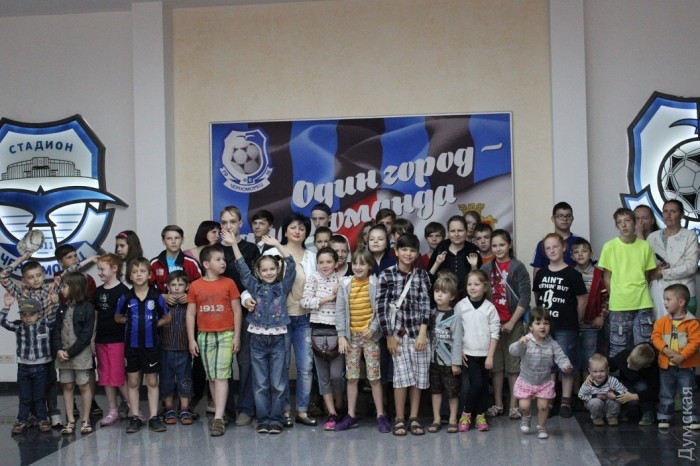 А ребята в свою очередь с радостью приняли приглашение на праздник. Да не где-нибудь, а на знаменитой арене «Черноморец». По городу в комфортабельных автобусах ехали весело, в предвкушении развлечений и подарков.