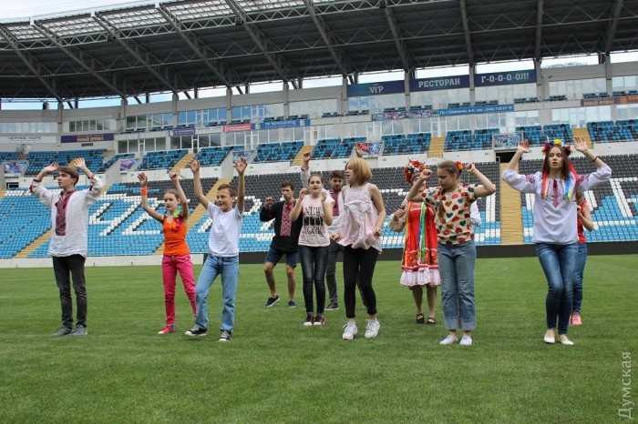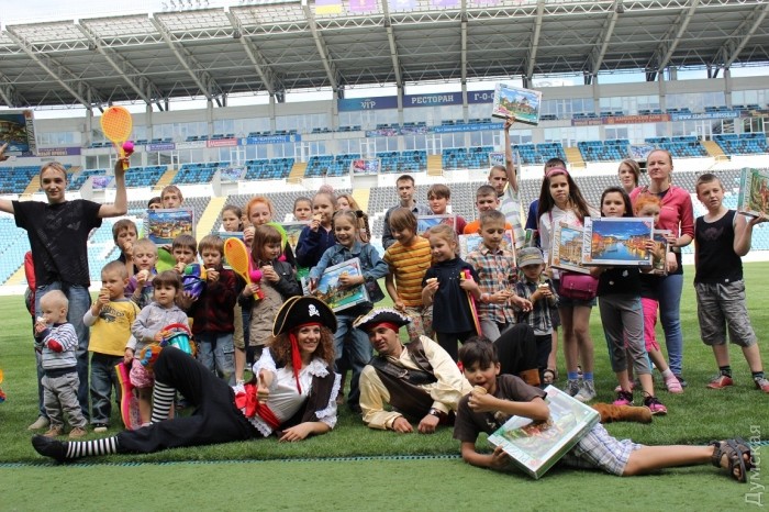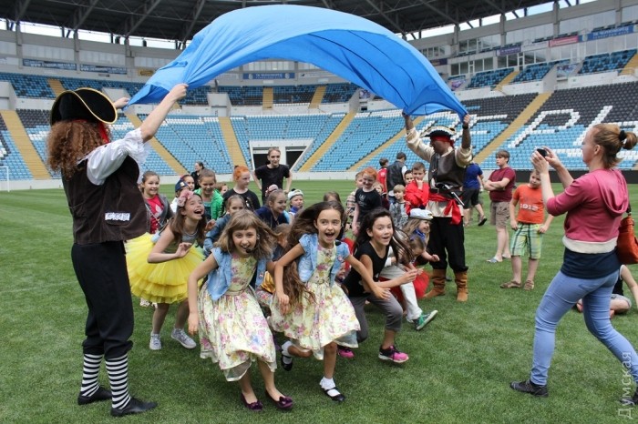 Прогулку по всем интересностям спортивной арены, подарки, и танцы с песнями юные одесситы в этот день разделили со своими сверстниками — воспитанниками «Фабрики звездочек», хореографическим ансамблем «Украиночка», а также молодыми актерами Одесского театрального лицея. Именно они подготовили для аудитории большую концертную программу.