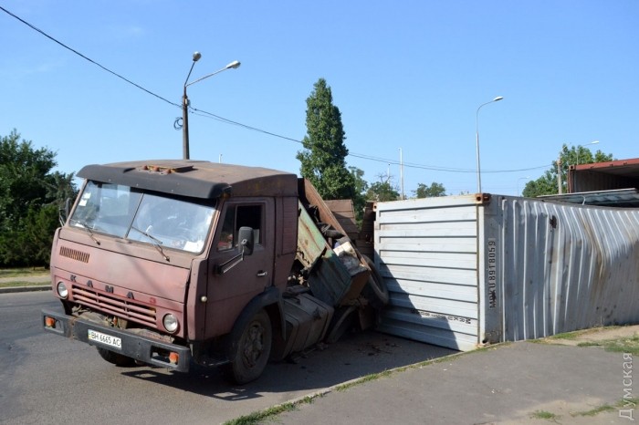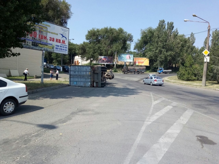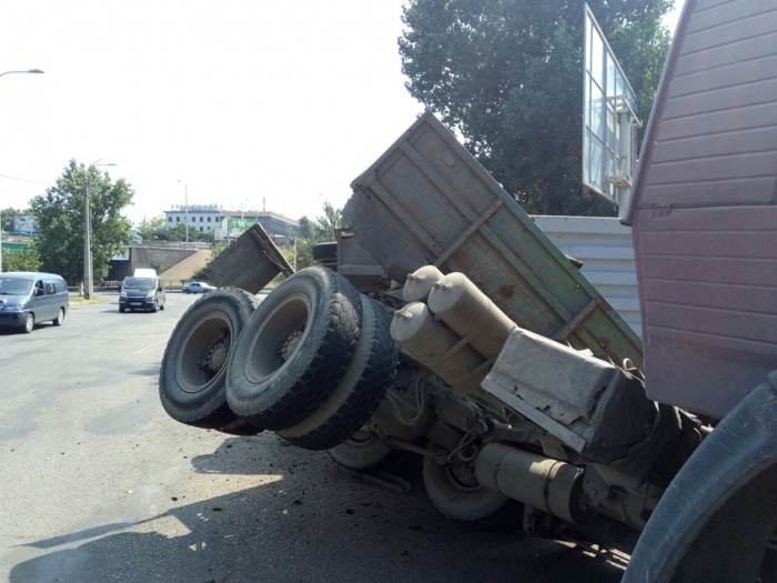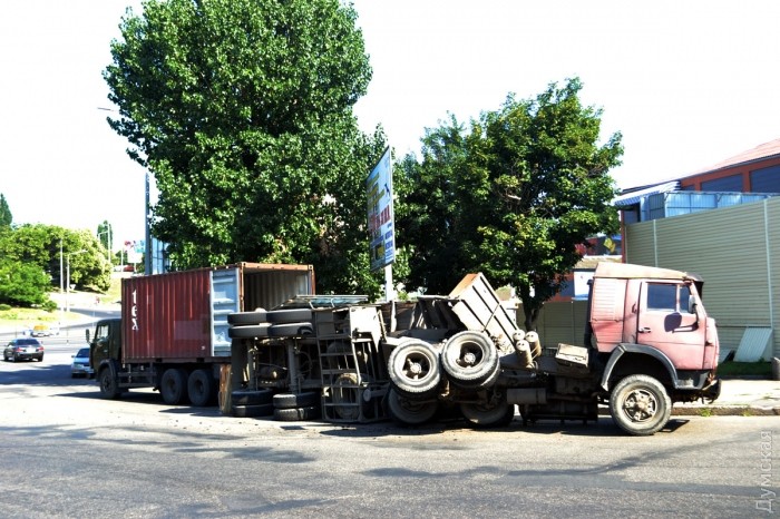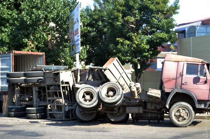 Как сообщает патрульная полиция, около 7 часов на перекрестке с Бугаевской водитель автомобиля КамАЗ не справился с управлением, вследствие чего допустил опрокидывание полуприцепа с грузом. Пострадавших нет.