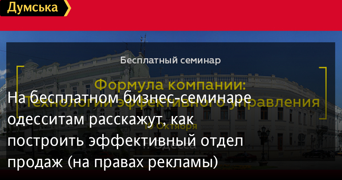 На бесплатном бизнес-семинаре одесситам расскажут, как построить эффективный отдел продаж (на правах рекламы)19 октября в Одессе пройдет бесплатный семинар «Формула компании: технологии эффективного управления» для всех предпринимателей и топ-менеджеров компаний. Потратив всего 7 часов на семинар, вы сможете упростить рабочие процессы, а также сократить количество нерешенных проблем в отделе продаж. Вас ждут более 10 докладов и успешных кейсов. Участие в семинаре бесплатное, но требуется предварительная регистрация. Чтобы ваша компания развивалась быстрее, чем конкуренты, а прибыль увеличивалась без дополнительного штата и дорогостоящего оборудования, нужно знать о работающих стратегиях и новых бизнес-инструментах, которые помогут снизить затраты и автоматизировать рутину. На семинаре выступят эксперты в области продаж, тайм-менеджмента, управления коммуникациями из компаний: Visotsky Consulting, BogushTime, «1С-Битрикс», BST Consulting, «Перформия Украина», BusinessForward, AWG, AMP Digital Agency и другие. На семинаре вы узнаете: - Как организовать продажи в компании и что упускают более 50% собственников? - Как оторваться от конкурентов, когда услуги/товары и цены у всех одинаковые? Семинар будет полезен: · Директорам и владельцам компаний, которые хотят улучшить качество управления компанией; · Руководителям подразделений, которые хотят повысить эффективность работы подчиненных; · HR-менеджерам, которые стремятся развивать корпоративную культуру и повысить качество подбора персонала. Время проведения: 10:00-17:00 Место: Impact Hub Odessa, зал Амстердам (2-й этаж) Адрес: г. Одесса, ул. Греческая, 1 А За дополнительной информацией обращайтесь в компанию AWG: +38(097) 936-72-68, awg.bitrix@yandex.ru. СМЕРТЬ РОССИЙСКИМ ОККУПАНТАМ! Заметили ошибку? Выделяйте слова с ошибкой и нажимайте control-enter |