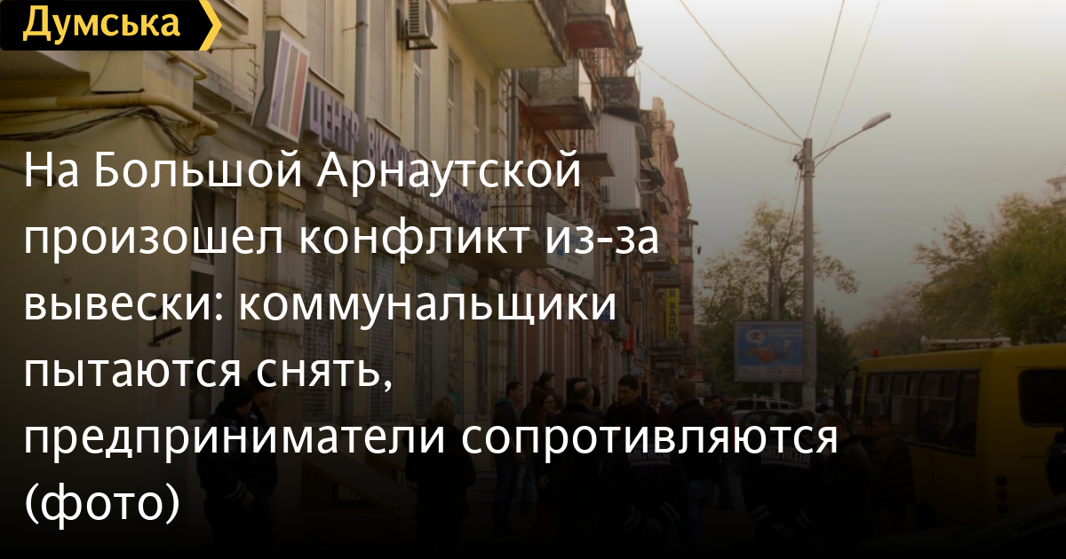 Конфликт с участием коммунальщиков, предпринимателей, частной охраны и милиции, который сегодня наблюдали жители улицы Большой Арнаутской связан с вывеской, которую пытались демонтировать.