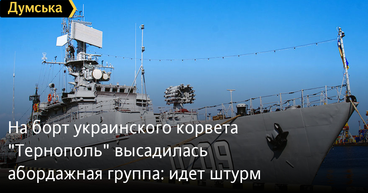 На борт корвета «Тернополь», заблокированного в Северной бухте Севастополя, высадилась абордажная группа численностью до 20 человек.