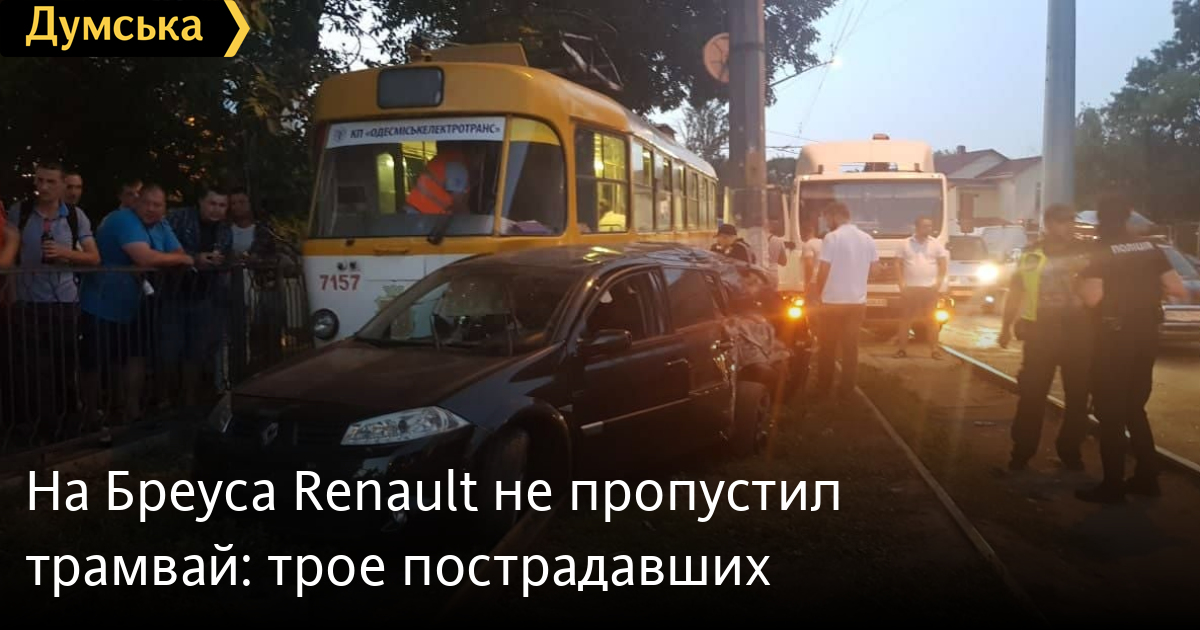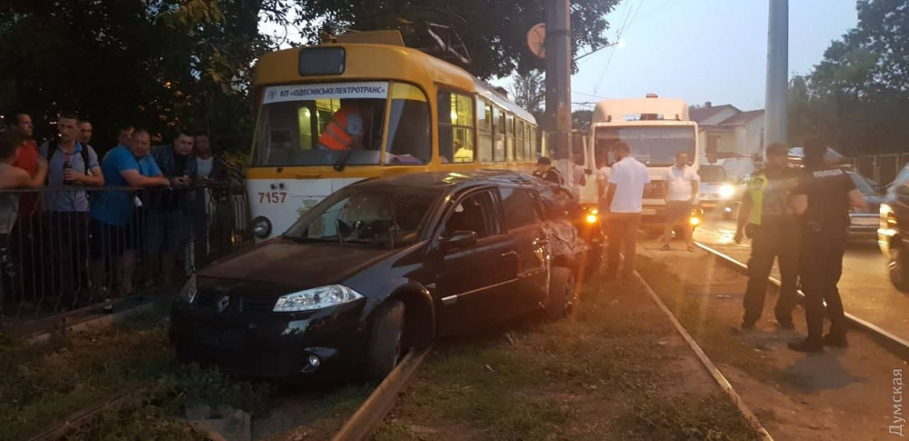 Как сообщили в пресс-службе патрульной полиции, автомобиль Renault Megane заезжал на придомовую территорию частного дома, не предоставив преимущество в движении трамваю.