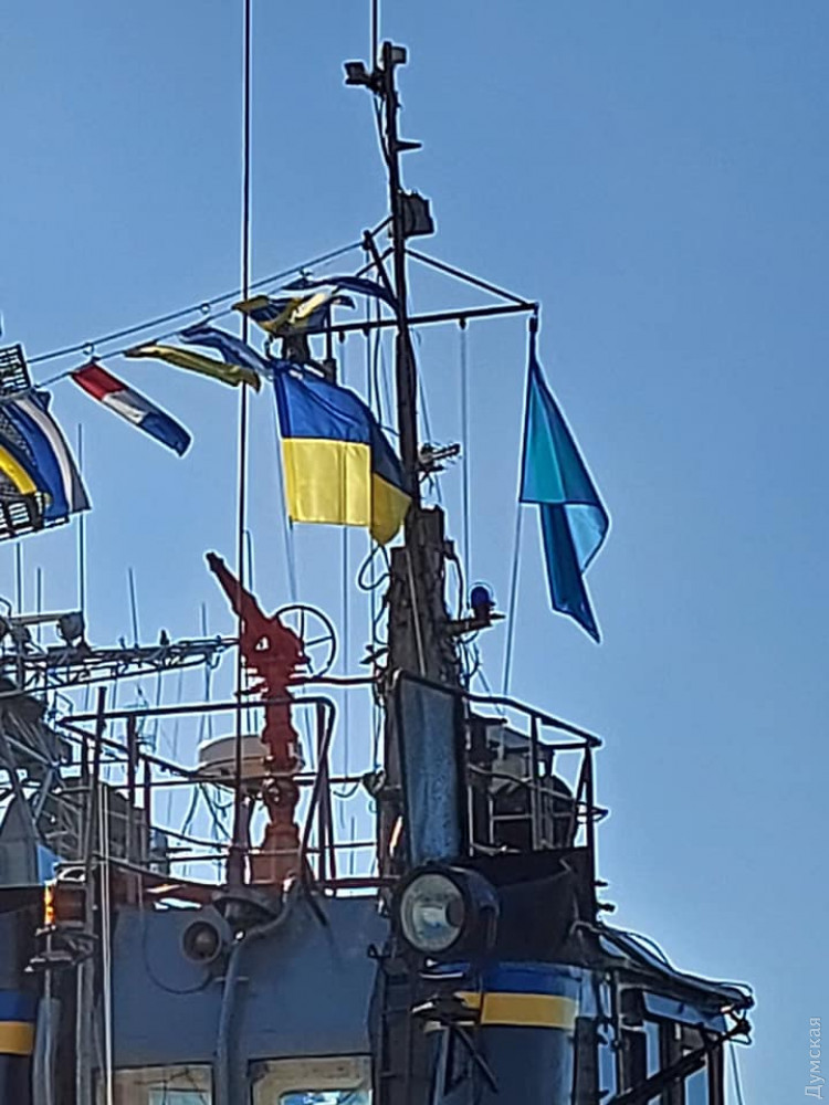 На буксире Военно-морских сил Украины «Яны Капу» в торжественной обстановке был поднят крымскотатарский флаг.