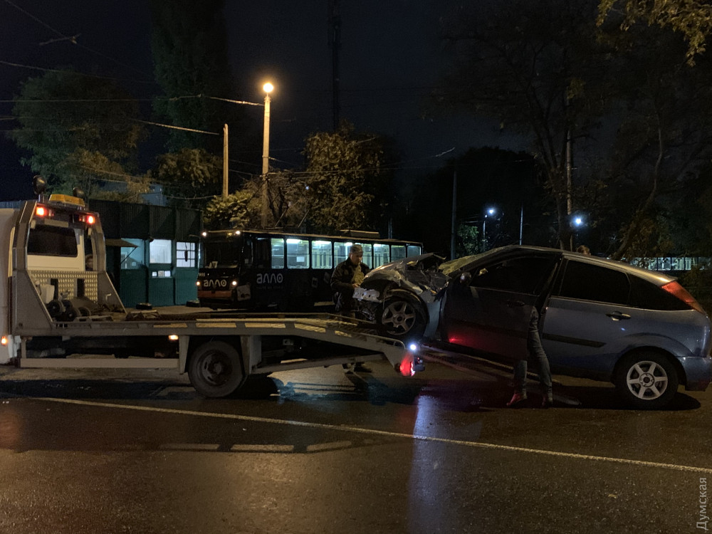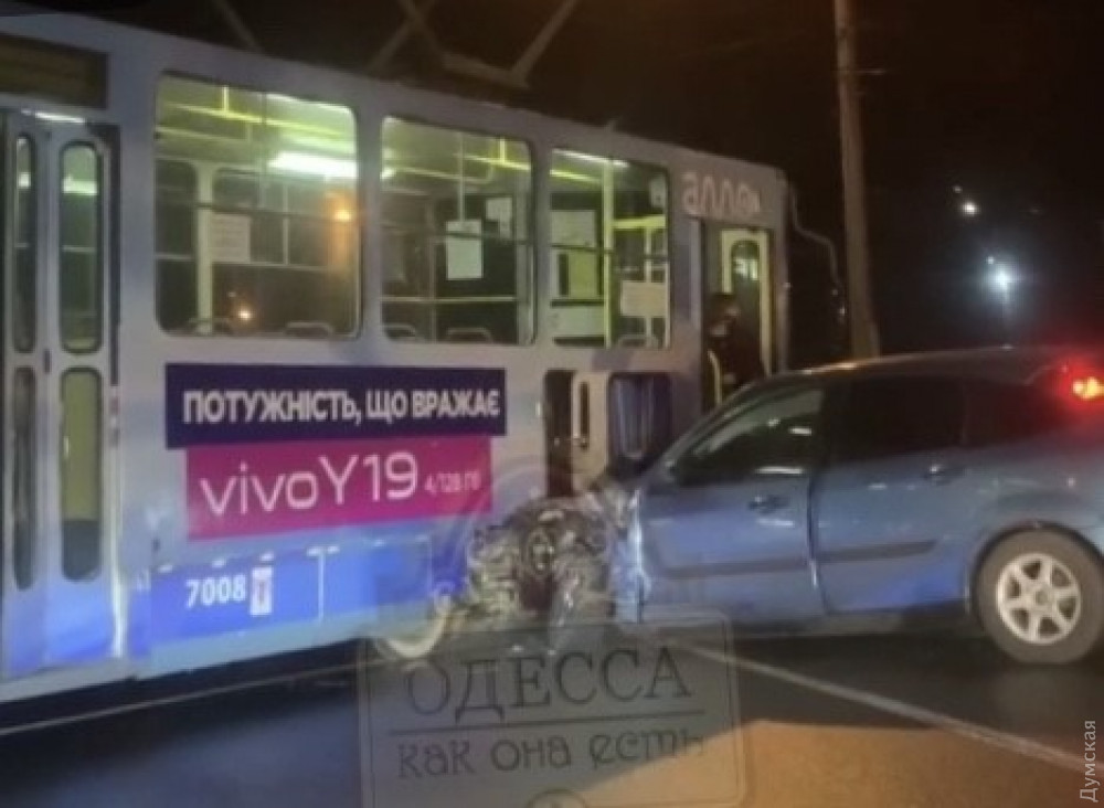 Легковой автомобиль Ford Focus врезался в трамвай №10, который двигался по кольцу на конечную остановку маршрута на Ицхака Рабина, передает корреспондент «Думской».