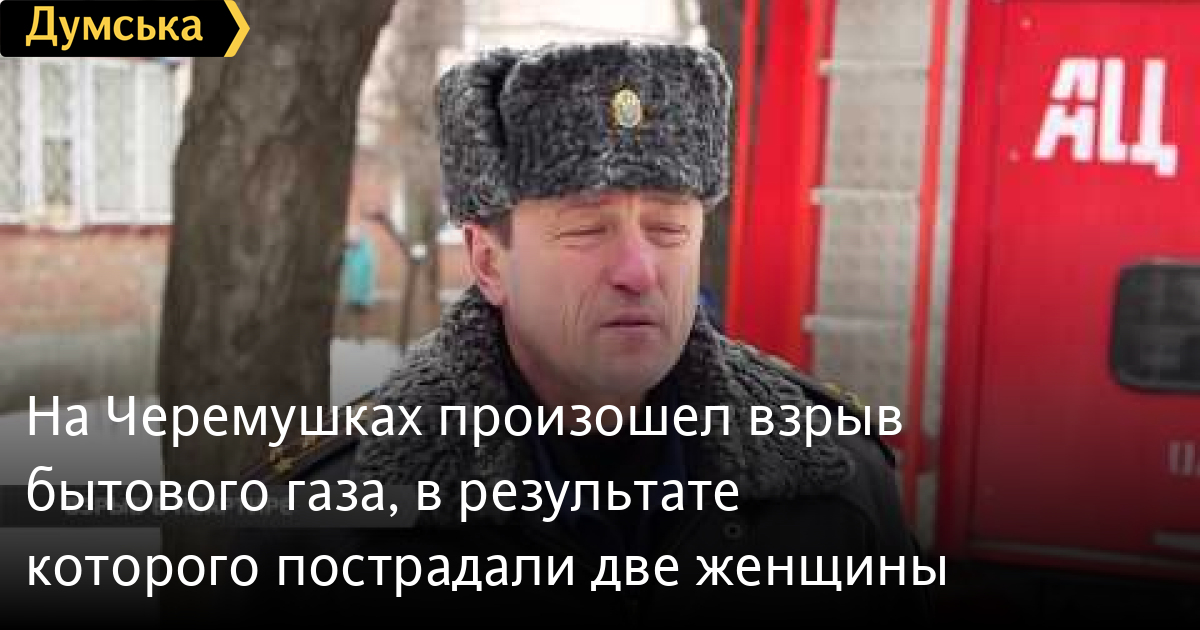 На Черемушках произошел взрыв бытового газа, в результате которого пострадали две женщиныНа Черемушках произошел взрыв бытового газа, в результате которого пострадали две женщины. По словам спасателей, газ скопился в воздухе до опасной концентрации. Сила взрыва была настолько мощной, что ударной волной вынесло двери квартиры и окна во всем подъезде. Продолжит тему Алла Есина. СМЕРТЬ РОССИЙСКИМ ОККУПАНТАМ! Заметили ошибку? Выделяйте слова с ошибкой и нажимайте control-enter Думская ТВ. Сюжеты: