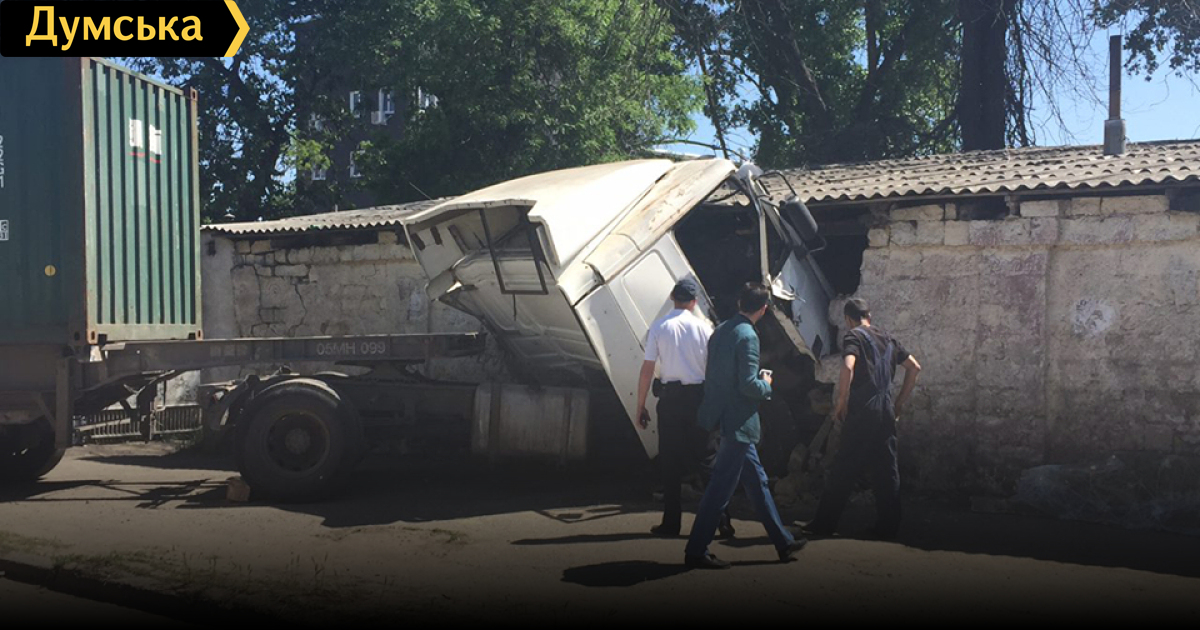 На Дальницкой контейнеровоз столкнулся с микроавтобусом и протаранил стену дома