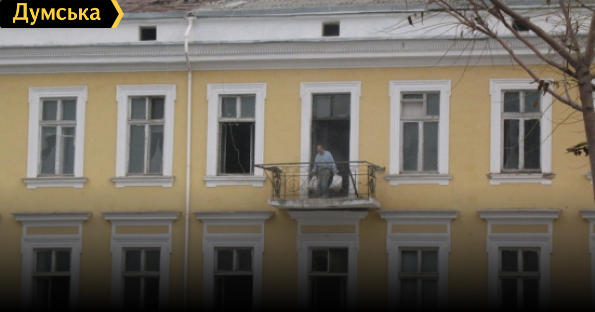 Каждый день там прохожу… Там не рабочие, а отморозки! Подъезжает грузовик, и они прямо с окон выбрасывают крупногабаритный мусор, несмотря на то что люди ходят. А когда выставили помещение на продажу, то было написано «продается с правом достройки третьего этажа». И им фиолетово, что это самый центр Одессы, и памятник архитектуры!