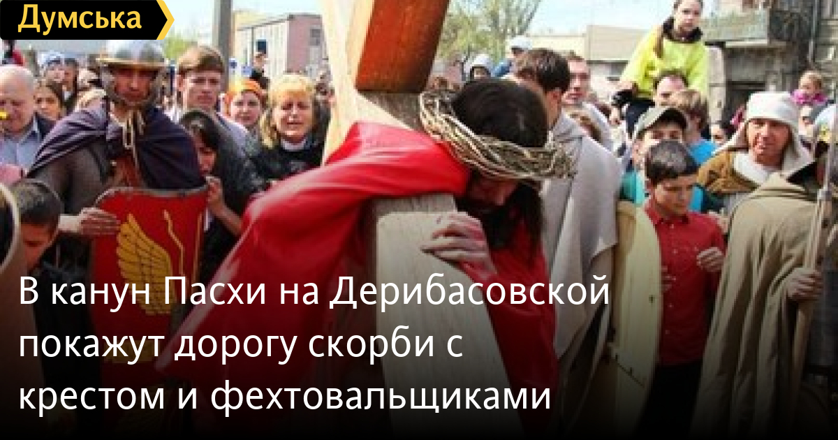 В канун Пасхи на Дерибасовской покажут «дорогу скорби» с крестом и фехтовальщиками11 апреля в центре Одессы пройдет масштабное театрализованное действо – «Пасхальная реконструкция». Как сообщают организаторы, в постановке будут задействованы около 300 актеров и волонтеров. Кроме того, зрители увидят фехтовальщиков, которые специально для реконструкции подготовили серию трюков. «Планируется, что это будет костюмированная постановка, приближенная к 1-му веку н.э. Основная цель — погрузиться в атмосферу событий того времени, что поможет вырваться из суеты и задуматься над истинным значением Пасхи. Главные герои пасхальной истории – Иисус Христос, Варавва, Пилат, сотник, римские легионеры и израильтяне пройдут по так называемой Дороги скорби Иисуса Христа», — отмечают организаторы. Представление начнется в 12 часов на углу Дерибасовской и Преображенской. СМЕРТЬ РОССИЙСКИМ ОККУПАНТАМ! Заметили ошибку? Выделяйте слова с ошибкой и нажимайте control-enter Новости по этой теме: 16 апреля 2023: Одесситы справляют Воскресение Христово: у храмов Православной церкви Украины огромное количество верующих (фоторепортаж) 20 апреля 2022: В Украине из-за военного положения не будет дополнительных выходных на Пасху и майские 4 мая 2021: В Турции закрыли гостиницу из-за вечеринки с туристами без масок – в числе нарушителей были украинцы |