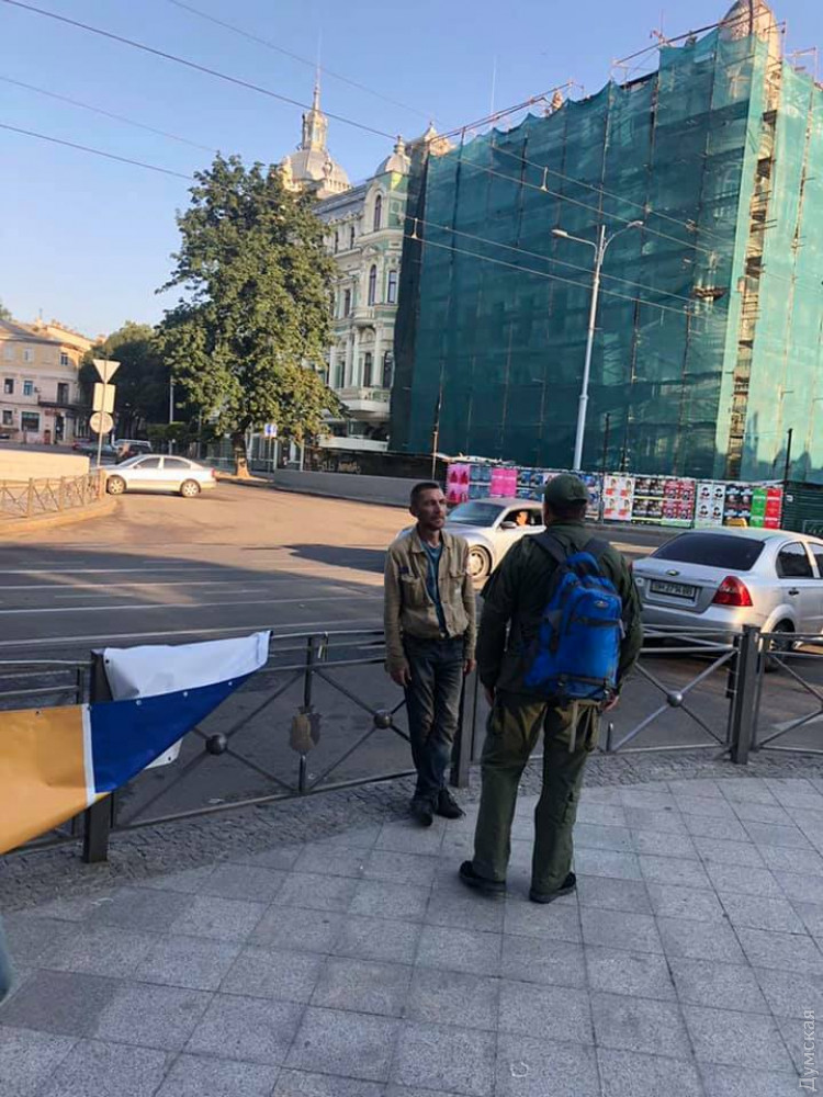 «Мужчина в форме» по своей сути ничем не отличается от того «вандала», который баннер этот пытался сорвать. Больше физически только, поэтому херой. Был бы «вандал» в два раза больше, прошёл бы мимо и сделал вид, что не заметил. А так перед тощим полутрезвым бомжом можно и повы..ться.