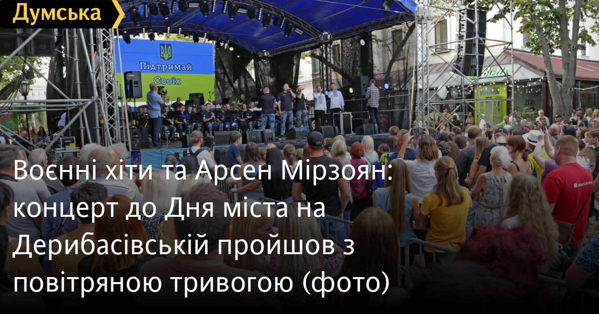 Воєнні хіти та Арсен Мірзоян: концерт до Дня міста на Дерибасівській пройшов з повітряною тривогою