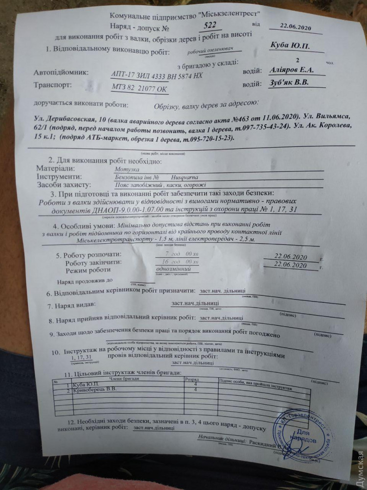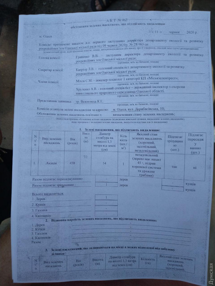 Именно в этом документе в графе «возраст» стоит число 450. Напомним, считается, что старейшим деревом Одессы является дуб «Черная ночь», что напротив Политеха. По одной из версий, его посадили в конце XVIII века запорожские казаки.