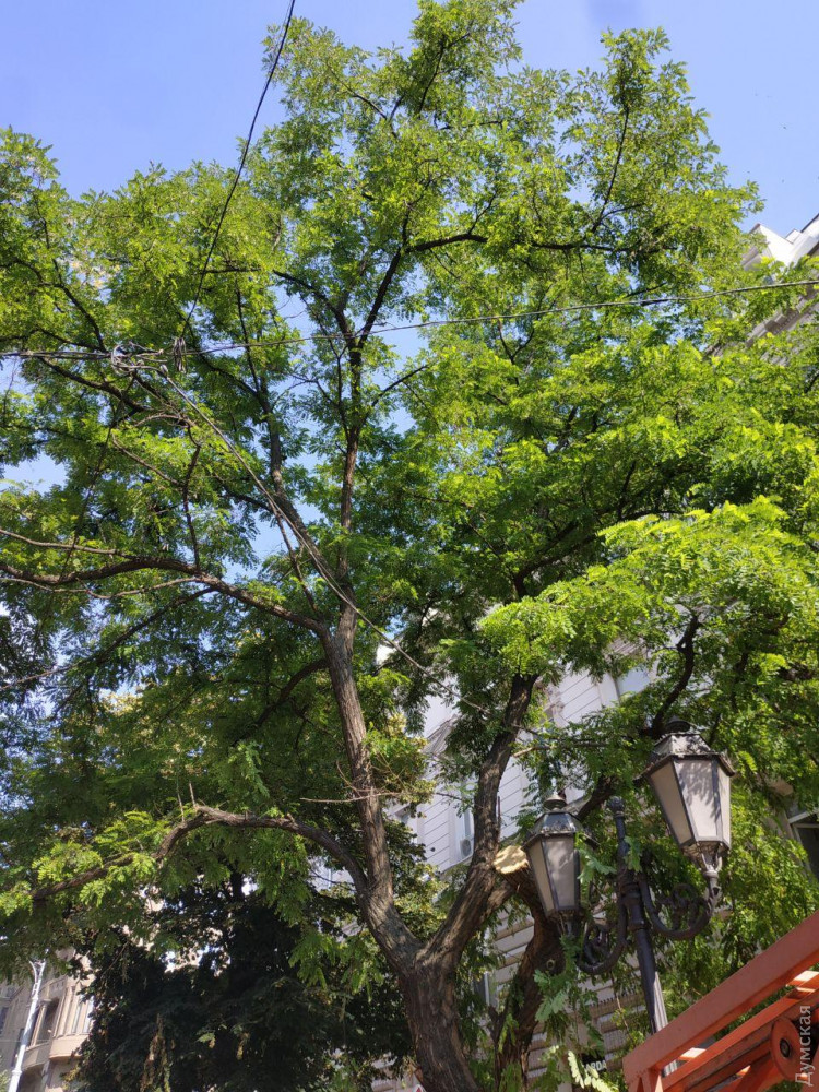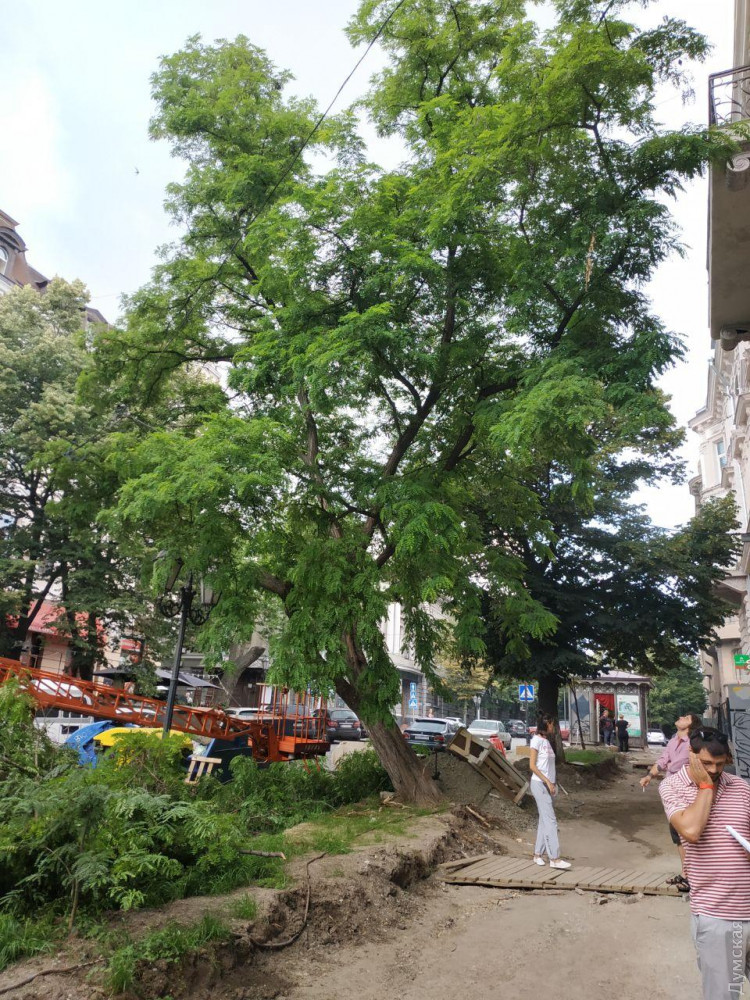 Жители доходного дома Стифеля на Дерибасовской, 10 остановили демонтаж акации, возраст которой по документам составляет аж 450 лет, что в два раза больше, чем Одессе.
