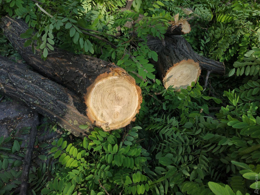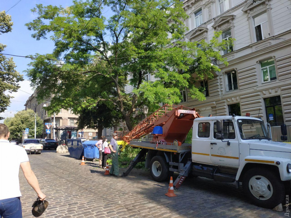 Как рассказали «Думской» экоактивисты, сносить дерево бригада работников «Горзелентреста» приехала в 8 утра. У них был автоподъемник, бензопила и акт обследования акации, согласно которому она находится в неудовлетворительном состоянии: наклон ствола 45%, корневая система повреждена, грибковое заражение.