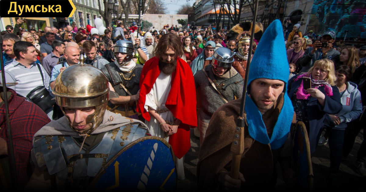 На Дерибасовской снова станут лагерем римские легионеры и пройдет судилище над ИисусомТрадиционная пасхальная реконструкция пройдет днем 27 апреля на Дерибасовской улице Одессы. Как сообщили организаторы, более 400 актеров воссоздадут последний путь Христа. Театрализованное шествие стартует в 13:30 на углу улиц Вице-адмирала Жукова и Дерибасовской. Актеры будут одеты в специально воссозданные костюмы I в. н. э., изображая людей разных сословий: рыболовов, купцов, крестьян, придворных мудрецов, легионеров в доспехах и шлемах, Марию Магдалену и Понтия Пилата. Каждый образ продуман до деталей, включая обувь и прически. Библейские персонажи пройдут по булыжной мостовой Дерибасовской. Здесь развернутся сцены из Евангелий: предательство Иуды, заговор первосвященников и фарисеев, встреча с Иродом Антипой, суд Понтия Пилата, крестный путь Иисуса. «Пасхальная реконструкция иллюстрирует не только библейскую историю последних дней жизни Иисуса Христа и его воскресения, но и повседневную жизнь древней Палестины, а также вооружение, быт и боевые навыки римских легионеров. Мы стараемся как можно точнее воспроизвести эпоху, чтобы передать дух времени и помочь по-новому осознать это событие», — подчеркивает глава оргкомитета пасхальной реконструкции, вице-президент БФ «Добрый самарянин» Денис Сердиченко. Пасхальная реконструкция состоится в Одессе уже седьмой раз. В прошлом году для участия в шествии в Одессу прибыли исторические реконструкторы из Румынии и Чехии. В этом году организаторы готовят еще более масштабное событие. В нем примут участие реконструкторы из Италии, Румынии и Польши. СМЕРТЬ РОСІЙСЬКИМ ОКУПАНТАМ! Помітили помилку? Виділяйте слова з помилкою та натискайте control-enter |
