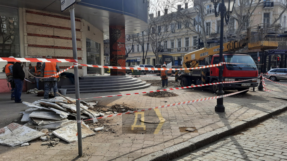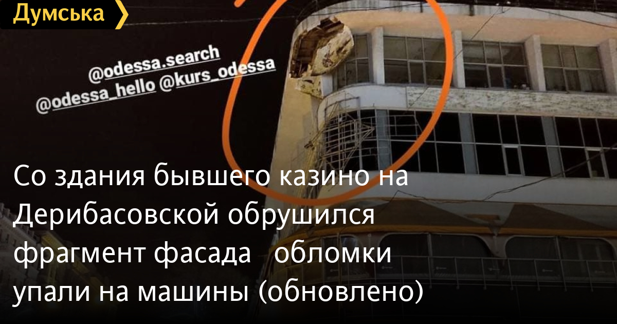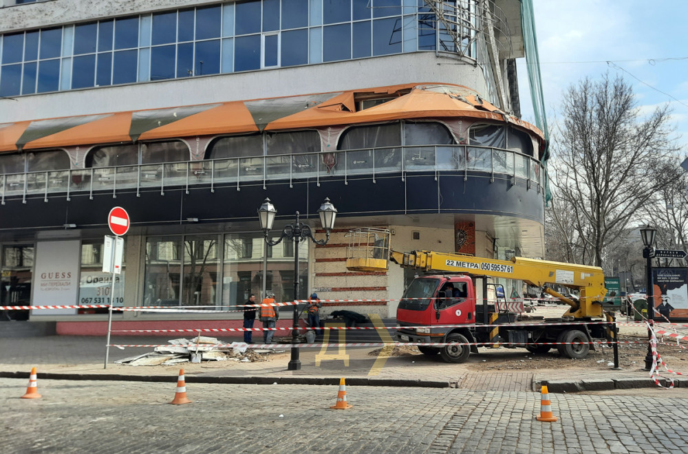 Куски карниза обвалились сегодня вечером с фасада углового трехэтажного здания, расположенного по адресу Дерибасовская,15/ Екатерининская, 19.