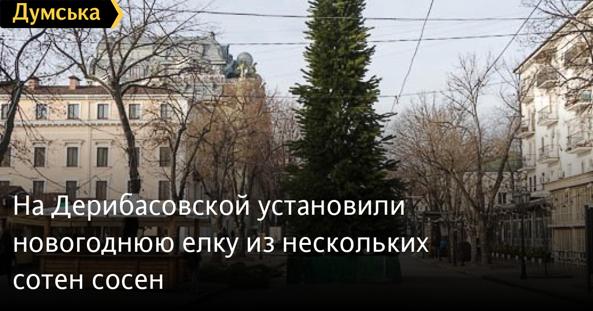 Главную елку Приморского района Одессы установили сегодня на Дерибасовской улице, передает корреспондент «Думской». Ее высота — 15 метров. Елка представляет собой металлический каркас, на котором закреплено почти 300 метровых сосенок, выращенных в Великодолинском лесничестве, что под Одессой. Завтра-послезавтра сооружение украсят игрушками и гирляндами. СМЕРТЬ РОССИЙСКИМ ОККУПАНТАМ! Заметили ошибку? Выделяйте слова с ошибкой и нажимайте control-enter |